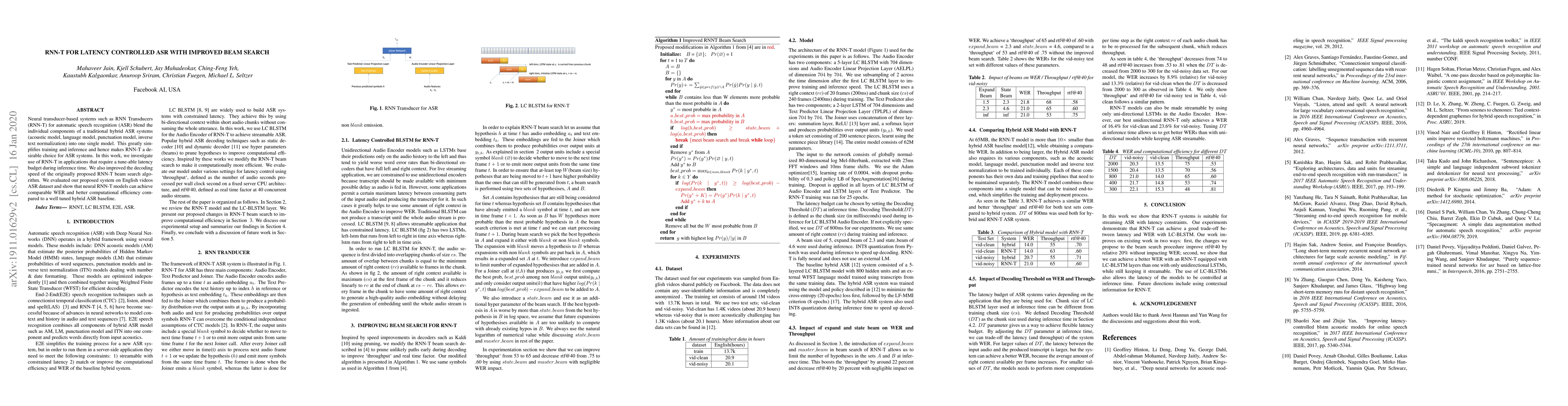 This paper explores the use of RNN Transducers (RNN-T) for automatic speech recognition (ASR) with tunable latency and improved beam search efficiency. The study demonstrates that RNN-T models achieve comparable word error rates and better computational efficiency than traditional hybrid ASR systems.