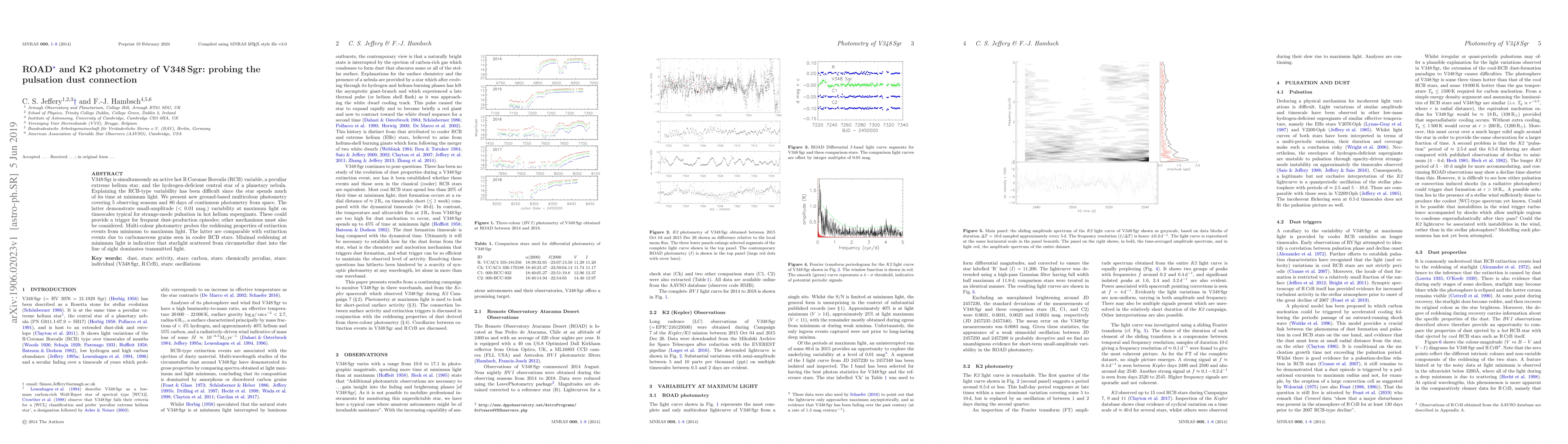 V348 Sgr is simultaneously an active hot R Coronae Borealis (RCB) variable, a peculiar extreme helium star, and the hydrogen-deficient central star of a planetary nebula. Explaining the RCB-type variability has been difficult since the star spends much of its time at minimum light. We present new ground-based multicolour photometry covering 5 observing seasons and 80 days of continuous photometry from space. The latter demonstrate small-amplitude (< 0.01 mag.) variability at maximum light on timescales typical for strange-mode pulsation in hot helium supergiants. These could provide a trigger for frequent dust-production episodes; other mechanisms must also be considered. Multi-colour photometry probes the reddening properties of extinction events from minimum to maximum light. The latter are comparable with extinction events due to carbonaceous grains seen in cooler RCB stars. Minimal reddening at minimum light is indicative that starlight scattered from circumstellar dust into the line of sight dominates transmitted light.
