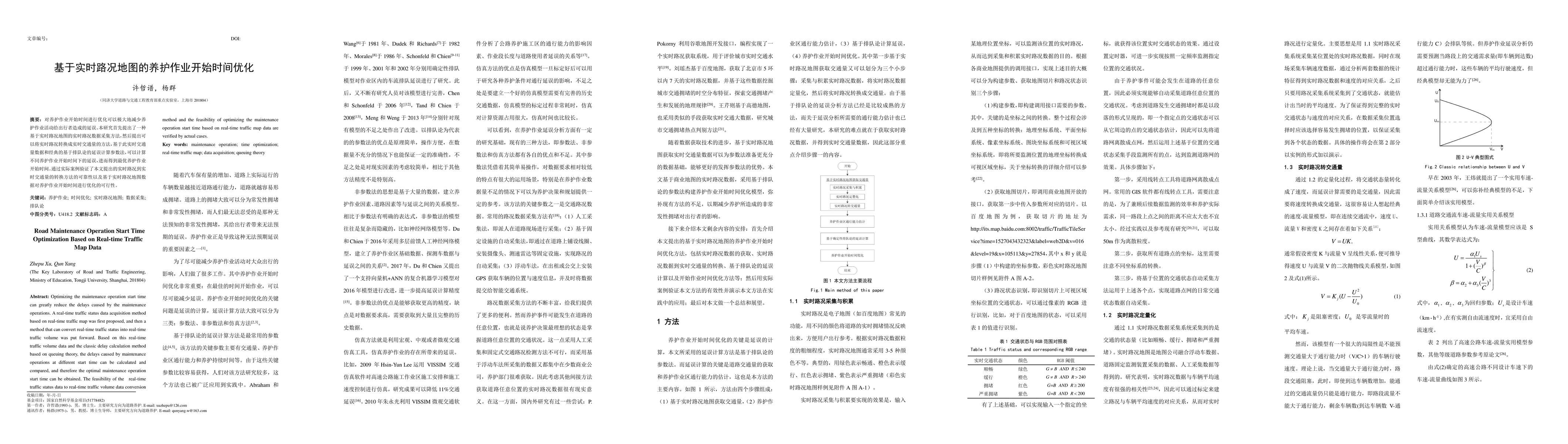 Optimizing the maintenance operation start time can greatly reduce the delays caused by the maintenance operations. A real-time traffic status data acquisition method based on real-time traffic map was first proposed, and then a method that can convert real-time traffic status into real-time traffic volume was put forward. Based on this real-time traffic volume data and the classic delay calculation method based on queuing theory, the delays caused by maintenance operations at different start time can be calculated and compared, and therefore the optimal maintenance operation start time can be obtained. The feasibility of the real-time traffic status data to real-time traffic volume data conversion method and the feasibility of optimizing the maintenance operation start time based on real-time traffic map data are verified by actual cases.