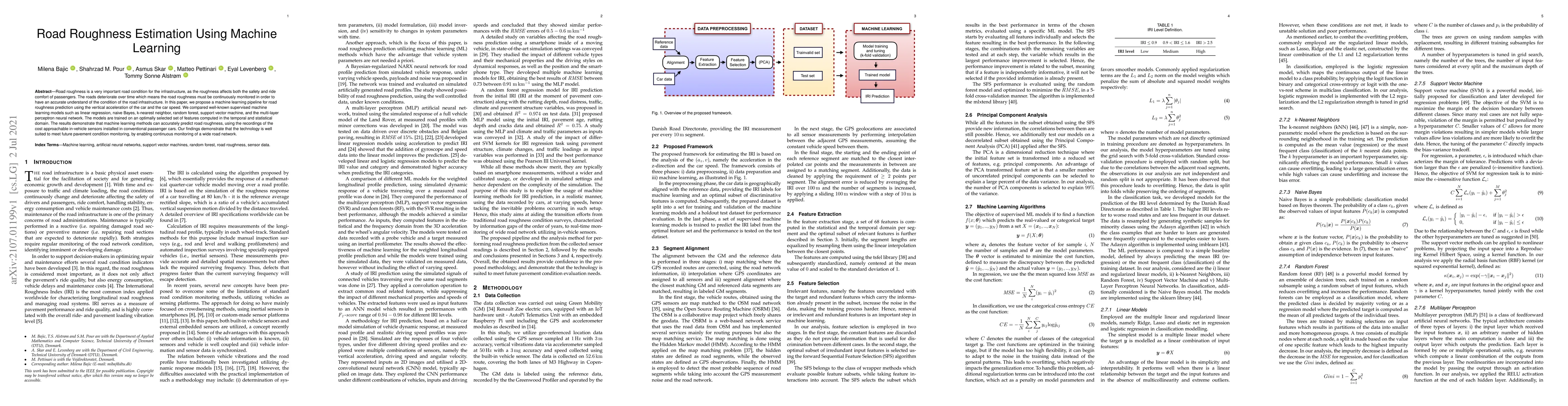 This paper proposes a machine learning pipeline for predicting road roughness using vertical acceleration and car speed data from in-vehicle sensors. The study compares various supervised learning models and finds that they can accurately estimate road roughness, suggesting the potential for continuous monitoring of road infrastructure.