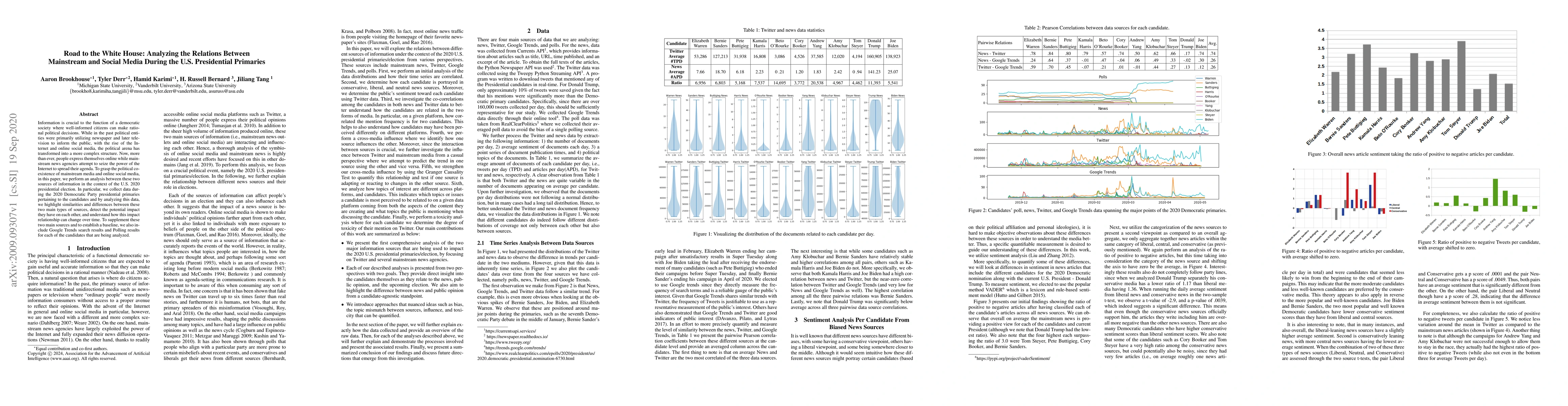 Information is crucial to the function of a democratic society where well-informed citizens can make rational political decisions. While in the past political entities were primarily utilizing newspaper and later television to inform the public, with the rise of the Internet and online social media, the political arena has transformed into a more complex structure. Now, more than ever, people express themselves online while mainstream news agencies attempt to seize the power of the Internet to spread their agenda. To grasp the political coexistence of mainstream media and online social media, in this paper, we perform an analysis between these two sources of information in the context of the U.S. 2020 presidential election. In particular, we collect data during the 2020 Democratic Party presidential primaries pertaining to the candidates and by analyzing this data, we highlight similarities and differences between these two main types of sources, detect the potential impact they have on each other, and understand how this impact relationship can change over time. To supplement these two main sources and to establish a baseline, we also include Google Trends search results and Polling results for each of the candidates that are being analyzed.