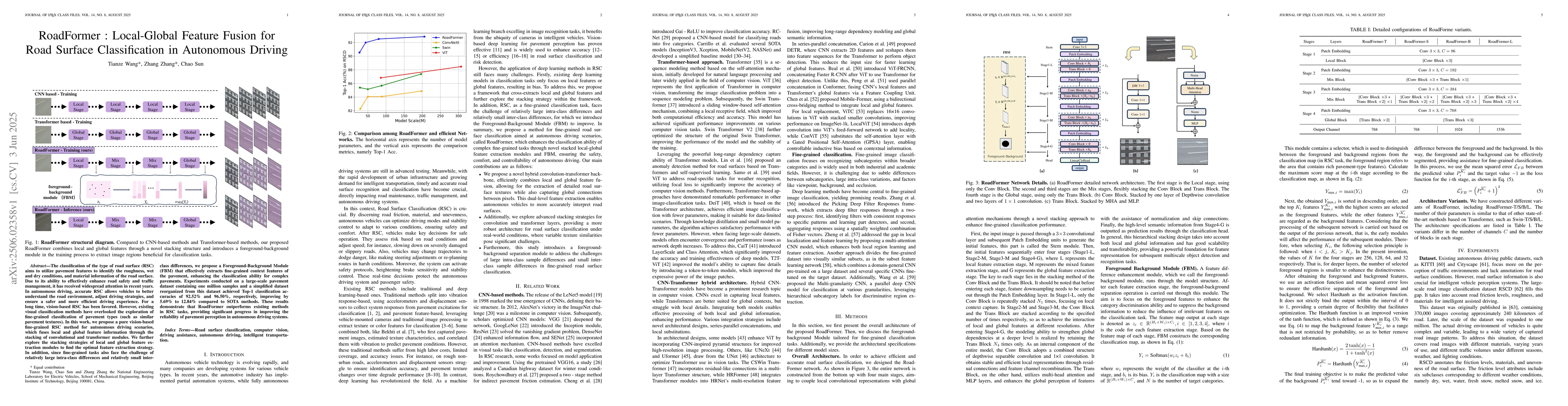 Researchers developed RoadFormer, a vision-based method that combines local and global features for accurate road surface classification in autonomous driving, achieving top-1 classification accuracies of 92.52% and 96.50%. The method improves upon state-of-the-art methods by significantly enhancing pavement perception reliability.