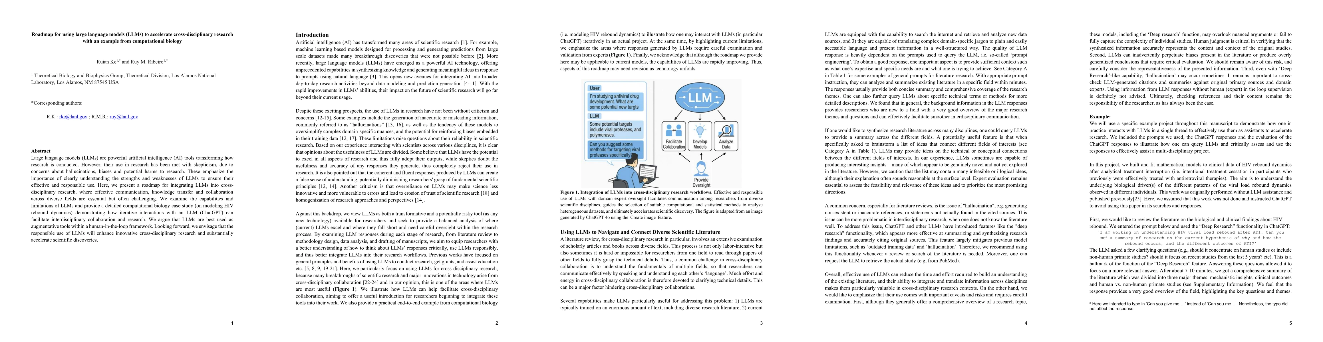 This paper outlines a roadmap for integrating large language models (LLMs) into cross-disciplinary research, emphasizing their use as augmentative tools within a human-in-the-loop framework. A case study in computational biology demonstrates how LLMs can facilitate interdisciplinary collaboration and research, such as modeling HIV rebound dynamics, while acknowledging their limitations and the need for responsible use.