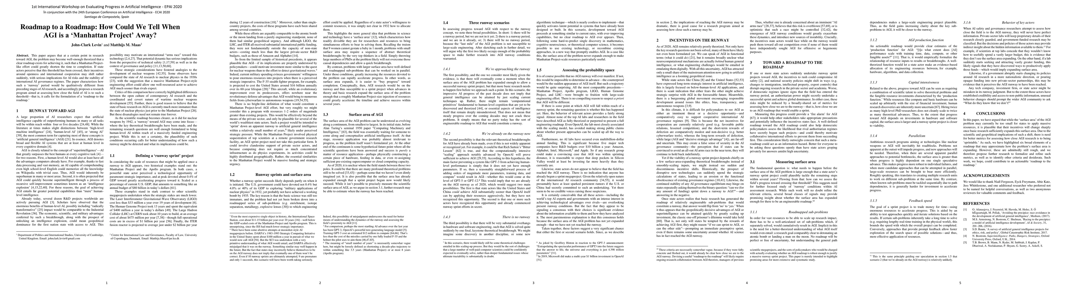This paper argues that at a certain point in research toward AGI, the problem may become well-enough theorized that a clear roadmap exists for achieving it, such that a Manhattan Project-like effort could greatly shorten the time to completion. If state actors perceive that this threshold has been crossed, their incentives around openness and international cooperation may shift rather suddenly, with serious implications for AI risks and the stability of international AI governance regimes. The paper characterizes how such a 'runway' period would be qualitatively different from preceding stages of AI research, and accordingly proposes a research program aimed at assessing how close the field of AI is to such a threshold - that is, it calls for the formulation of a 'roadmap to the roadmap.'