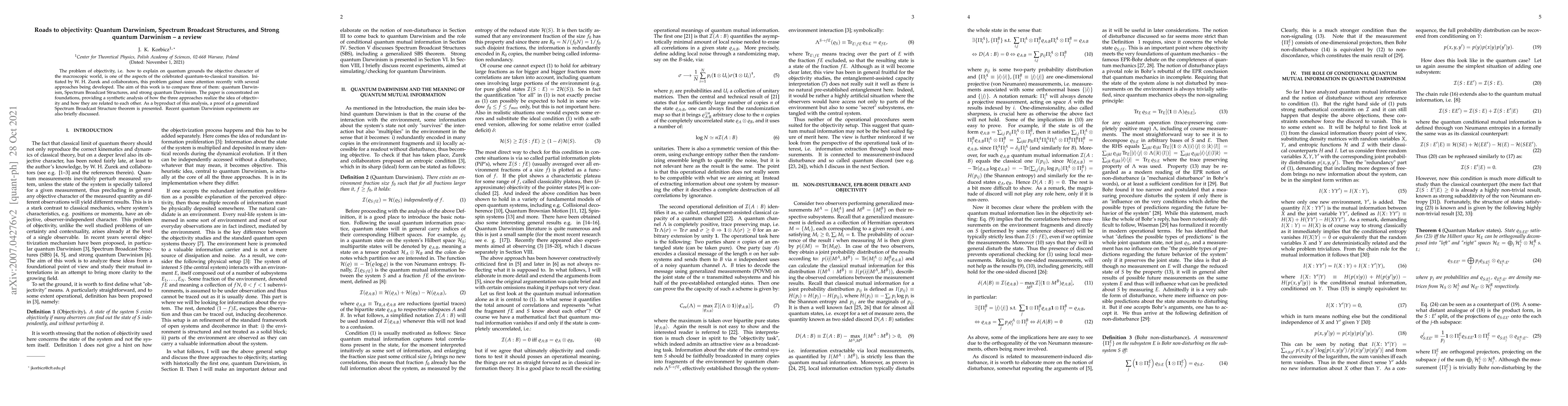This paper reviews three approaches to explaining the objective nature of the macroscopic world from quantum mechanics: quantum Darwinism, Spectrum Broadcast Structures, and strong quantum Darwinism. It provides a comparative analysis of these methods and their foundational principles, along with a proof of a generalized Spectrum Broadcast Structure theorem.
