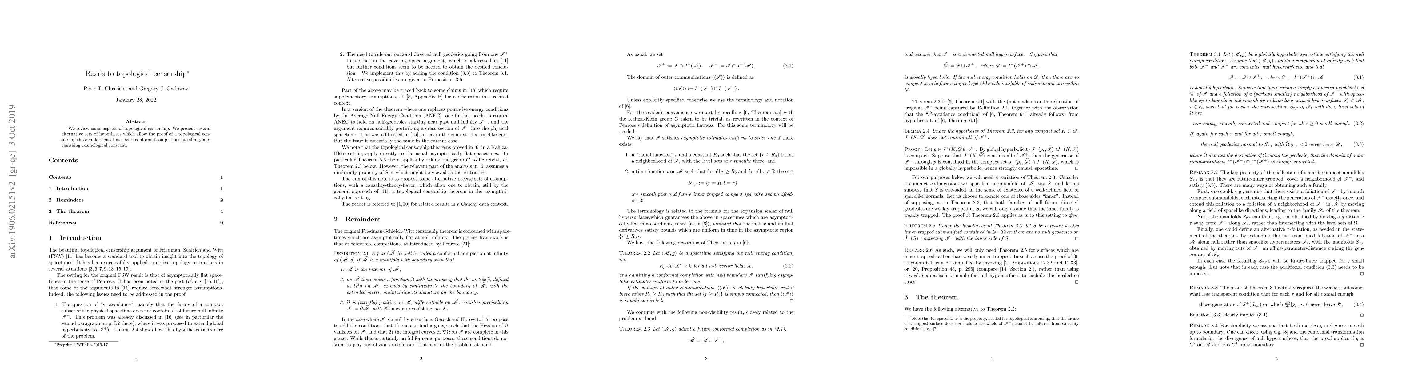In this note we review some aspects of topological censorship. We present several (actually five) alternative sets of hypotheses which allow the proof of a topological censorship theorem for spacetimes with conformal completions at infinity and vanishing cosmological constant.