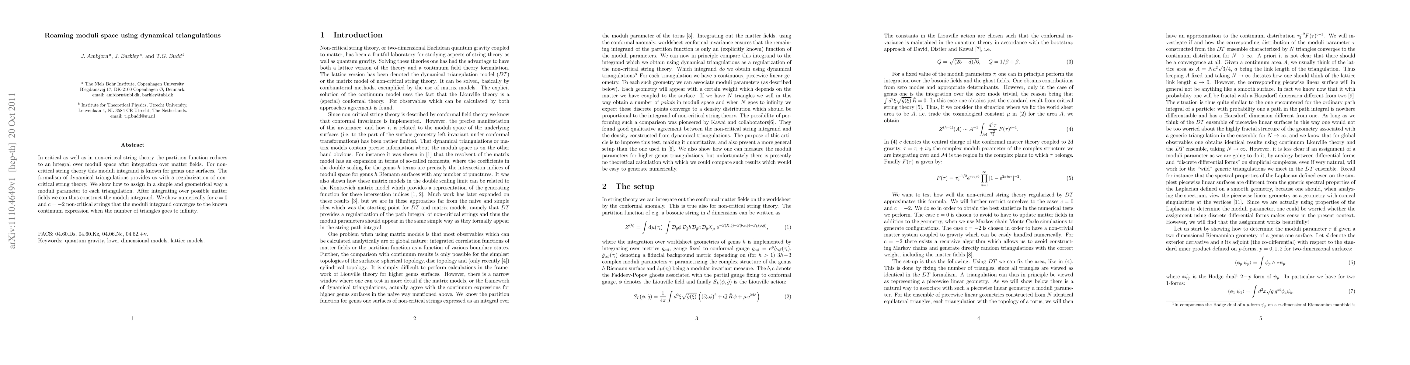In critical as well as in non-critical string theory the partition function reduces to an integral over moduli space after integration over matter fields. For non-critical string theory this moduli integrand is known for genus one surfaces. The formalism of dynamical triangulations provides us with a regularization of non-critical string theory. We show how to assign in a simple and geometrical way a moduli parameter to each triangulation. After integrating over possible matter fields we can thus construct the moduli integrand. We show numerically for $c=0$ and $c=-2$ non-critical strings that the moduli integrand converges to the known continuum expression when the number of triangles goes to infinity.