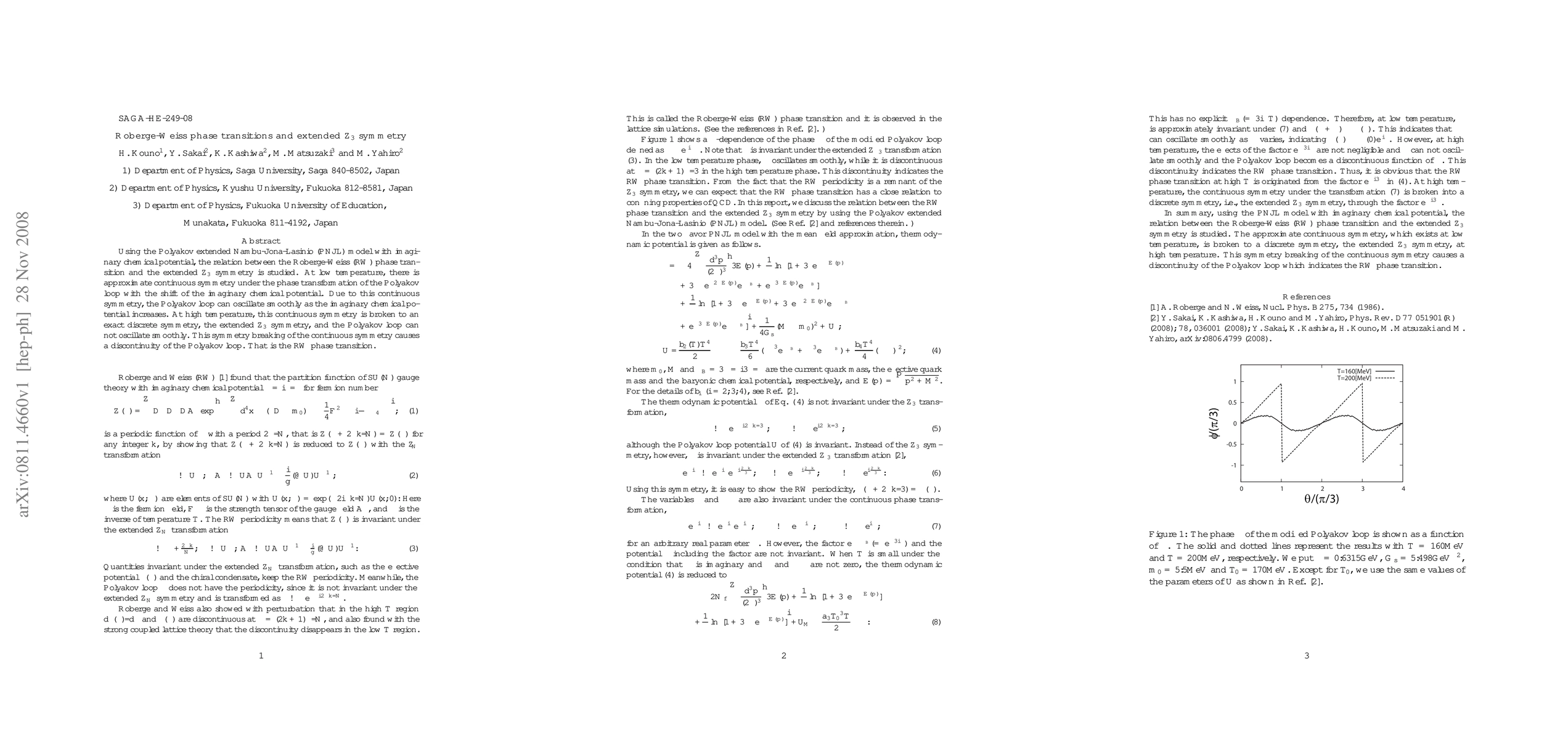 The paper investigates the Roberge-Weiss phase transition in the context of the Polyakov extended Nambu-Jona-Lasinio model using imaginary chemical potential, revealing a continuous symmetry at low temperatures that breaks to an exact extended Z3 symmetry at high temperatures, leading to a discontinuity in the Polyakov loop known as the RW phase transition.