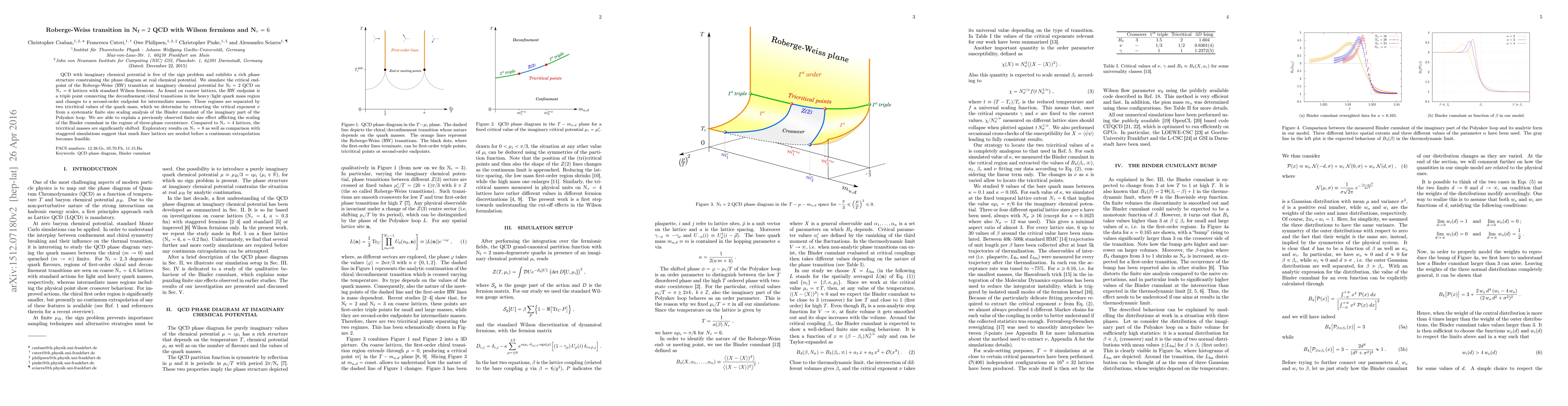 Researchers simulated the Roberge-Weiss transition in QCD with imaginary chemical potential to study its phase structure at real chemical potential. They found tricritical values of quark mass that separate distinct regimes and proposed that finer lattices are needed for a continuum extrapolation.