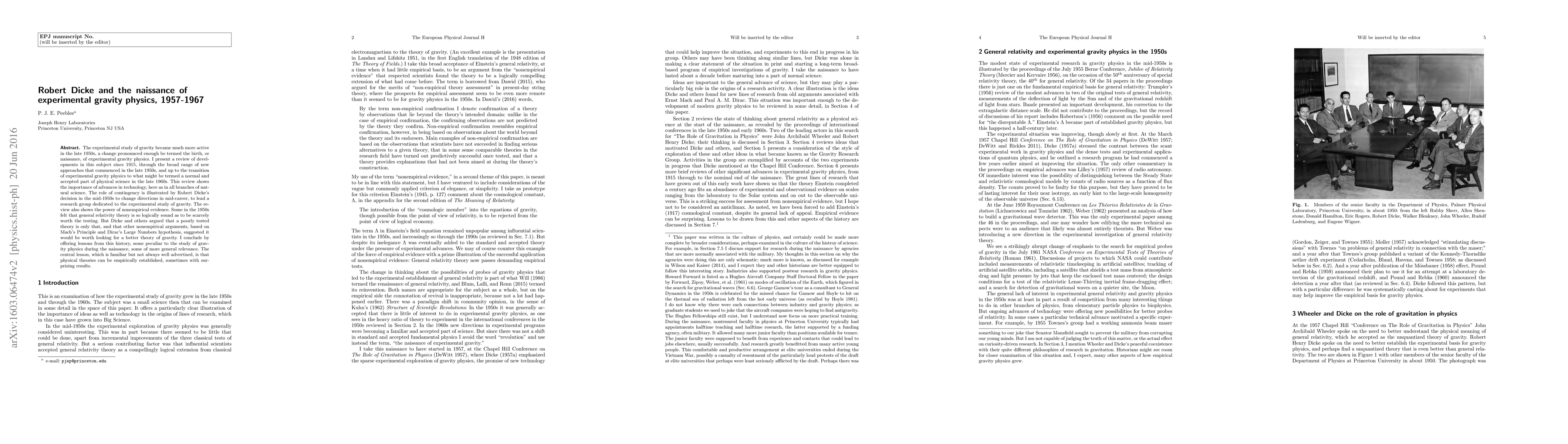 The experimental study of gravity became much more active in the late 1950s, a change pronounced enough be termed the birth, or naissance, of experimental gravity physics. I present a review of developments in this subject since 1915, through the broad range of new approaches that commenced in the late 1950s, and up to the transition of experimental gravity physics to what might be termed a normal and accepted part of physical science in the late 1960s. This review shows the importance of advances in technology, here as in all branches of natural science. The role of contingency is illustrated by Robert Dicke's decision in the mid-1950s to change directions in mid-career, to lead a research group dedicated to the experimental study of gravity. The review also shows the power of nonempirical evidence. Some in the 1950s felt that general relativity theory is so logically sound as to be scarcely worth the testing. But Dicke and others argued that a poorly tested theory is only that, and that other nonempirical arguments, based on Mach's Principle and Dirac's Large Numbers hypothesis, suggested it would be worth looking for a better theory of gravity. I conclude by offering lessons from this history, some peculiar to the study of gravity physics during the naissance, some of more general relevance. The central lesson, which is familiar but not always well advertised, is that physical theories can be empirically established, sometimes with surprising results.