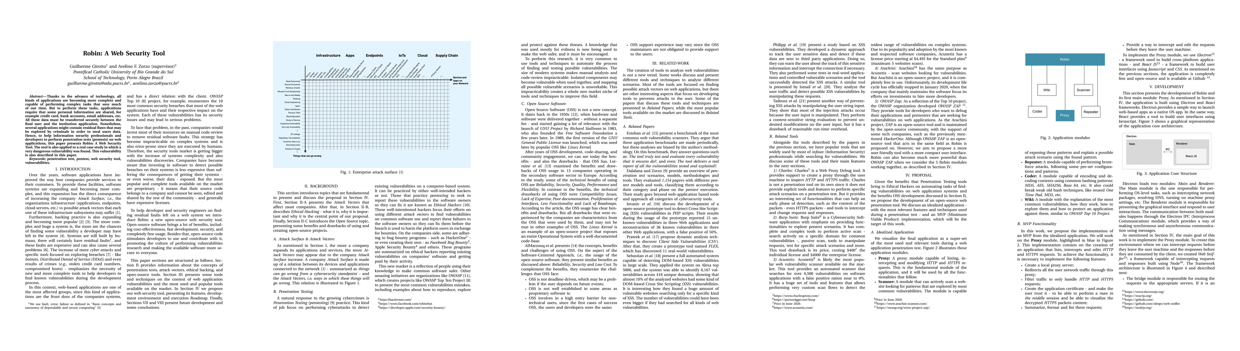 Robin is a web security tool designed to assist information security professionals and developers in performing penetration tests on web applications. The tool was successfully applied in a real case study where a significant vulnerability was identified and addressed.