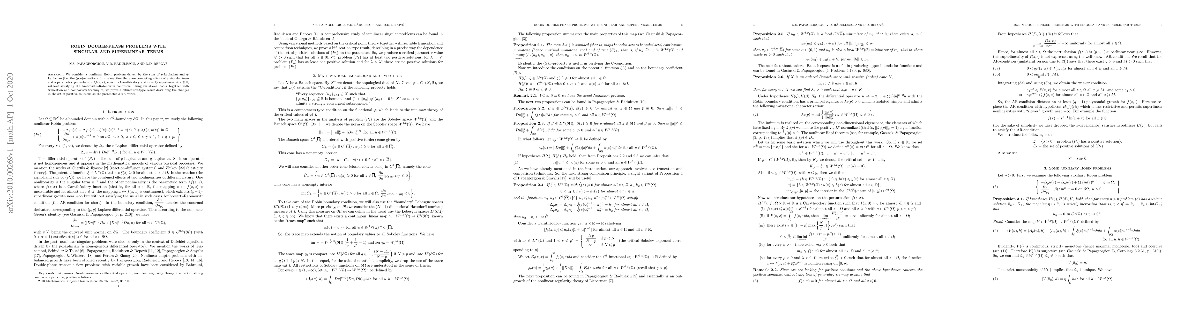 This paper explores a nonlinear Robin problem involving a $(p,q)$-equation with singular and superlinear terms, proving a bifurcation result for positive solutions as a parameter varies, using variational methods and comparison techniques without the Ambrosetti-Rabinowitz condition.