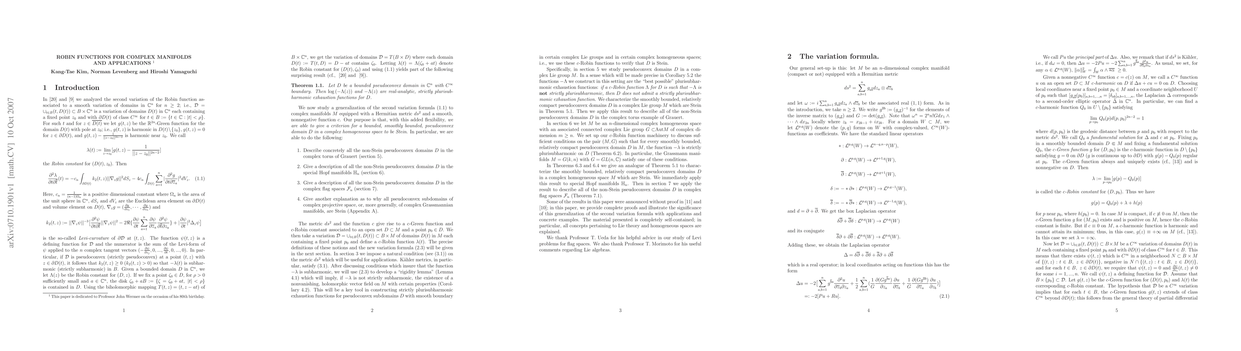 Researchers prove a generalization of the Robin function for complex manifolds, enabling a criterion for bounded pseudoconvex domains in complex homogeneous spaces to be Stein.