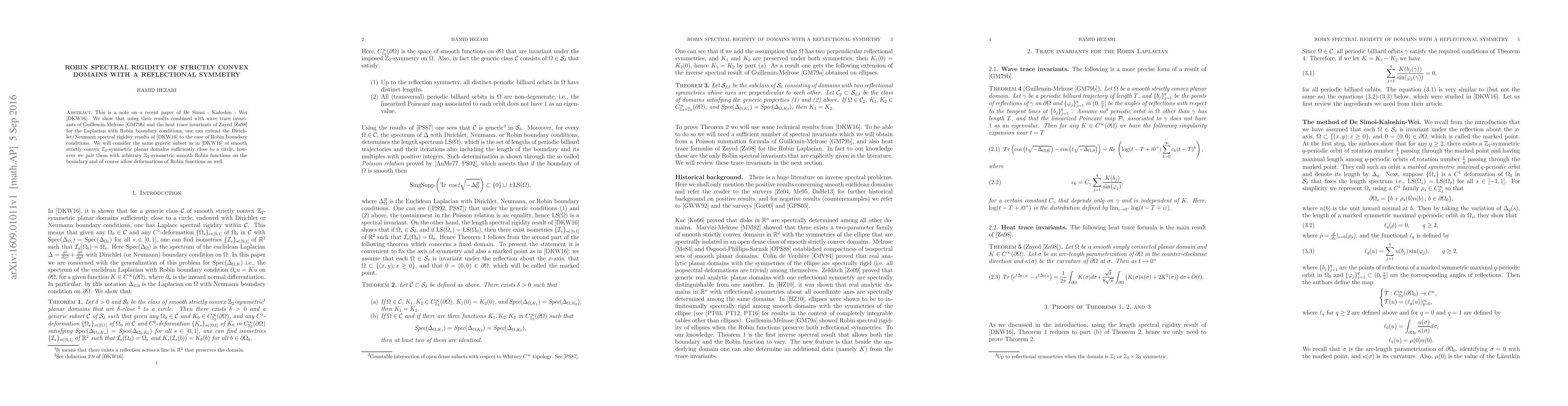 This paper extends spectral rigidity results from Dirichlet/Neumann to Robin boundary conditions for strictly convex domains with reflectional symmetry, using wave trace and heat trace invariants. It considers smooth domains close to a circle paired with $\mathbb Z_2$-symmetric Robin functions, allowing for deformations.