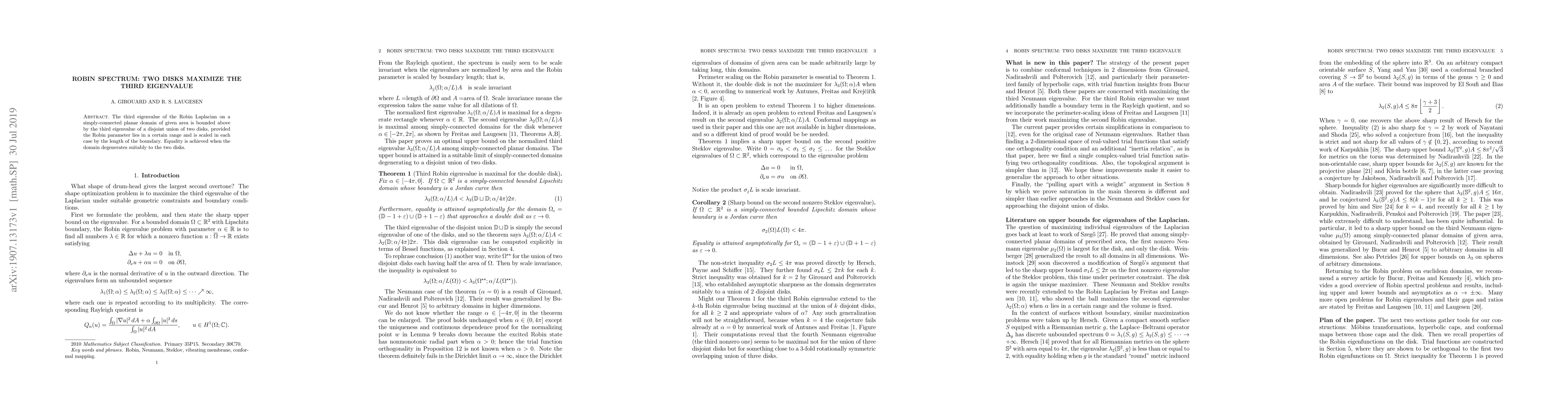 This paper demonstrates that for a given area, a simply-connected planar domain with the Robin boundary condition, the third eigenvalue is maximized when the domain is a disjoint union of two disks. Equality occurs when the domain transforms appropriately into the two disks.