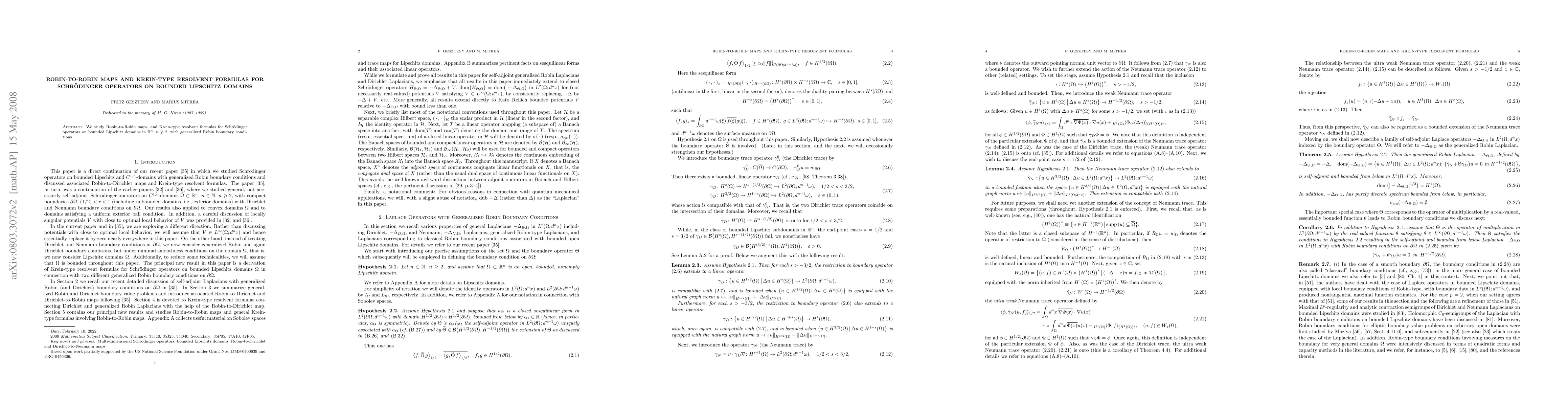 Summary: This paper investigates Robin-to-Robin maps and Krein-type resolvent formulas for Schrödinger operators defined on bounded Lipschitz domains, focusing on generalized Robin boundary conditions in $\mathbb{R}^n$ for $n \geq 2$.