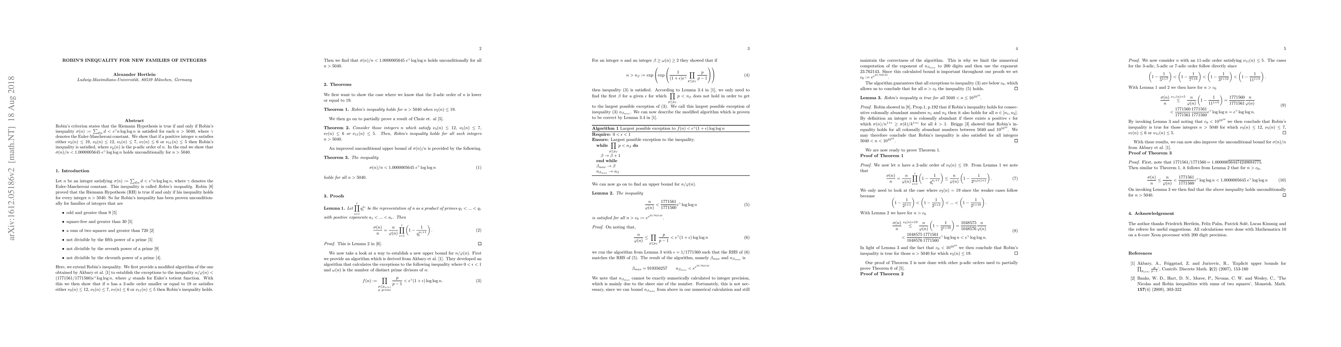 Robin's criterion states that the Riemann Hypothesis (RH) is true if and only