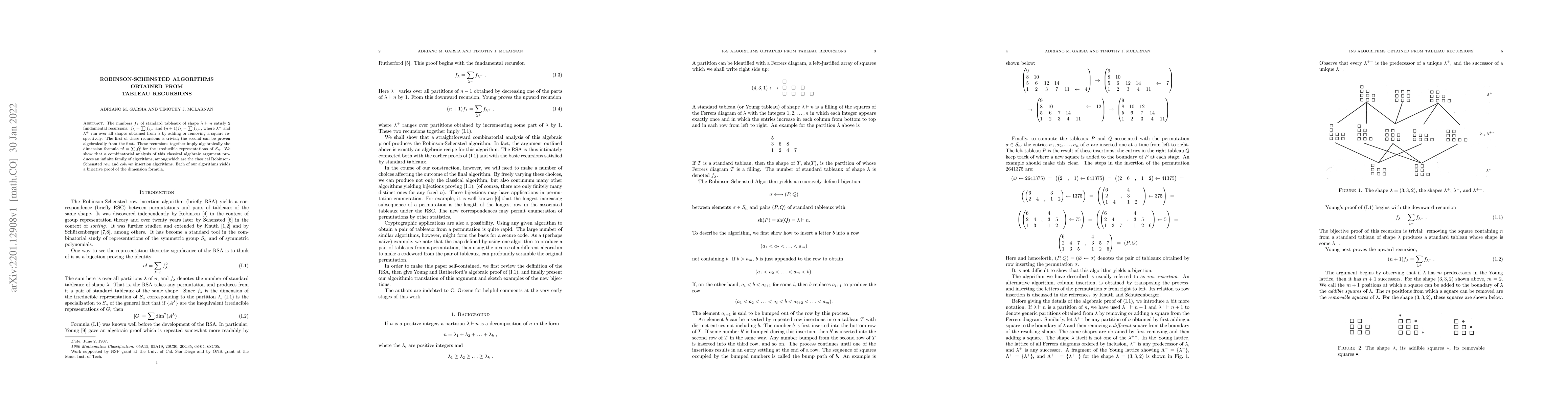 This paper explores the Robinson-Schensted algorithms derived from analyzing the recursions governing the number of standard tableaux. It demonstrates that these recursions lead to an infinite family of algorithms, including the classical Robinson-Schensted insertion methods, each providing a bijective proof for the dimension formula of the irreducible representations of the symmetric group.