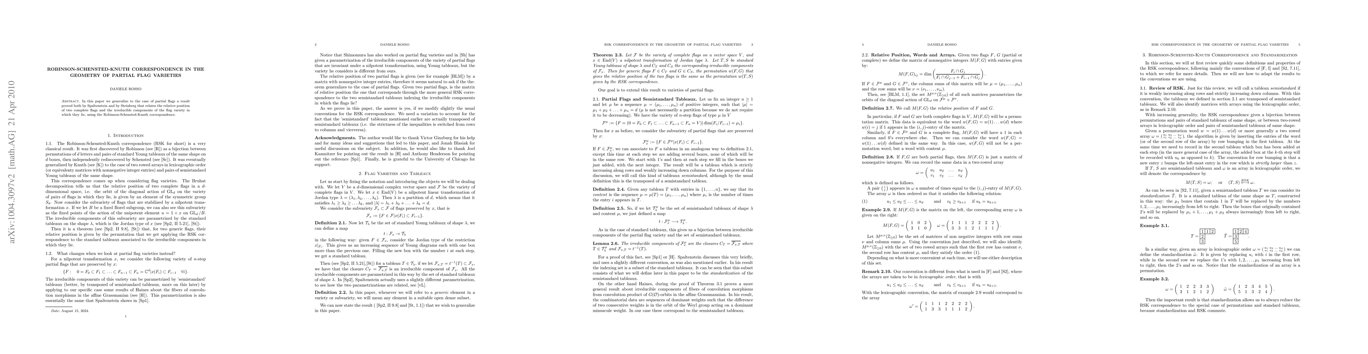 This paper generalizes the Robinson-Schensted-Knuth correspondence to partial flag varieties, extending a result that connects the relative positions of complete flags to the irreducible components of the flag variety.