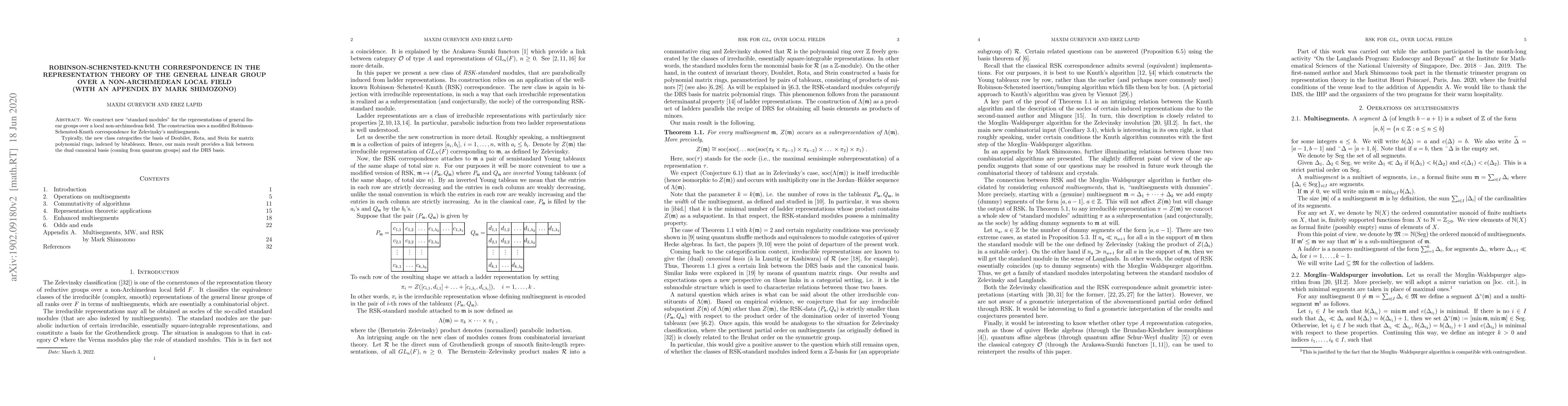 This paper constructs new "standard modules" for general linear groups over non-archimedean local fields using a modified Robinson-Schensted-Knuth correspondence. The new modules link the dual canonical basis from quantum groups with the DRS basis for matrix polynomial rings.
