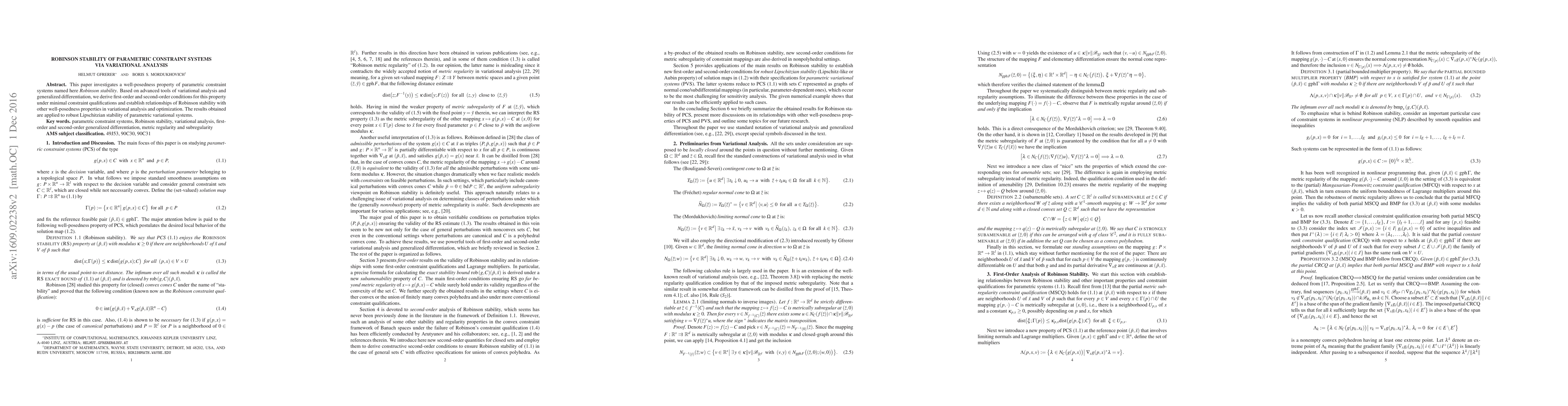 This paper establishes first- and second-order conditions for Robinson stability in parametric constraint systems using variational analysis, and relates it to other well-posedness properties, with applications to robust Lipschitzian stability.