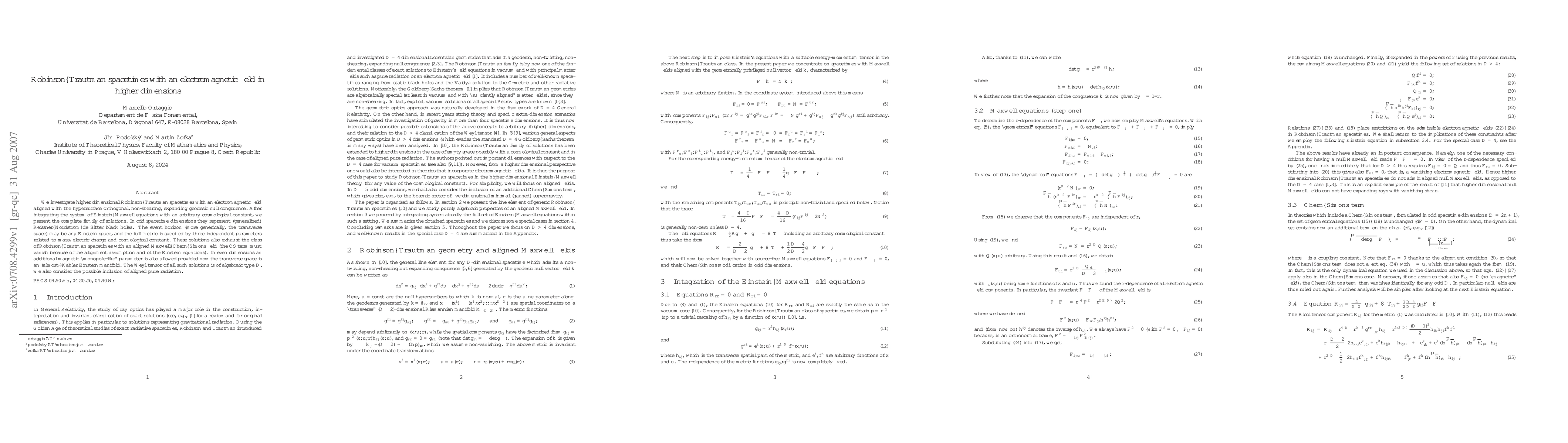 This paper explores higher dimensional Robinson-Trautman spacetimes with an electromagnetic field, presenting complete solutions for both odd and even dimensions. In odd dimensions, the solutions generalize Reissner-Nordstrom-de Sitter black holes, while in even dimensions, they allow for additional magnetic parameters, with the transverse space being an (almost-)Kahler Einstein manifold.