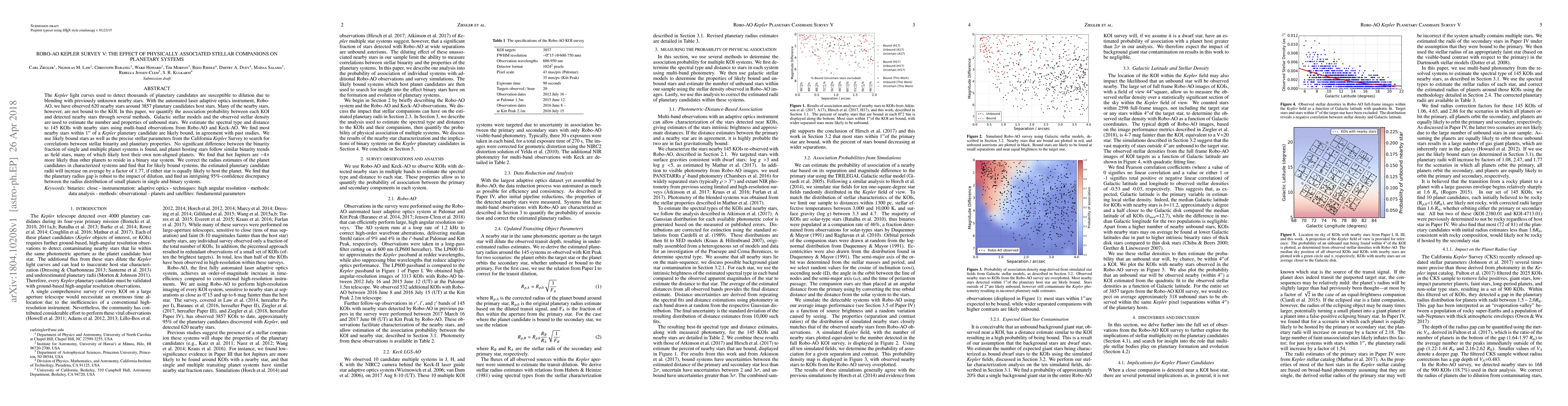 The Kepler light curves used to detect thousands of planetary candidates are susceptible to dilution due to blending with previously unknown nearby stars. With the automated laser adaptive optics instrument, Robo-AO, we have observed 620 nearby stars around 3857 planetary candidates host stars. Many of the nearby stars, however, are not bound to the KOI. In this paper, we quantify the association probability between each KOI and detected nearby stars through several methods. Galactic stellar models and the observed stellar density are used to estimate the number and properties of unbound stars. We estimate the spectral type and distance to 145 KOIs with nearby stars using multi-band observations from Robo-AO and Keck-AO. We find most nearby stars within 1" of a Kepler planetary candidate are likely bound, in agreement with past studies. We use likely bound stars as well as the precise stellar parameters from the California Kepler Survey to search for correlations between stellar binarity and planetary properties. No significant difference between the binarity fraction of single and multiple planet systems is found, and planet hosting stars follow similar binarity trends as field stars, many of which likely host their own non-aligned planets. We find that hot Jupiters are ~4x more likely than other planets to reside in a binary star system. We correct the radius estimates of the planet candidates in characterized systems and find that for likely bound systems, the estimated planetary candidate radii will increase on average by a factor of 1.77, if either star is equally likely to host the planet. We find that the planetary radius gap is robust to the impact of dilution, and find an intriguing 95%-confidence discrepancy between the radius distribution of small planets in single and binary systems.