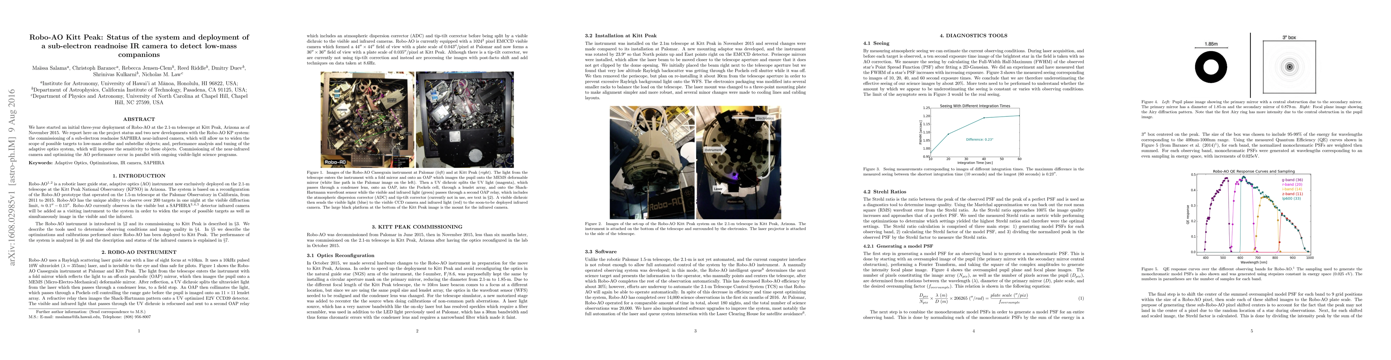 Robo-AO at Kitt Peak has begun a three-year deployment since November 2015, featuring a new sub-electron readnoise SAPHIRA near-infrared camera to detect low-mass companions, alongside adaptive optics system optimizations to enhance sensitivity.