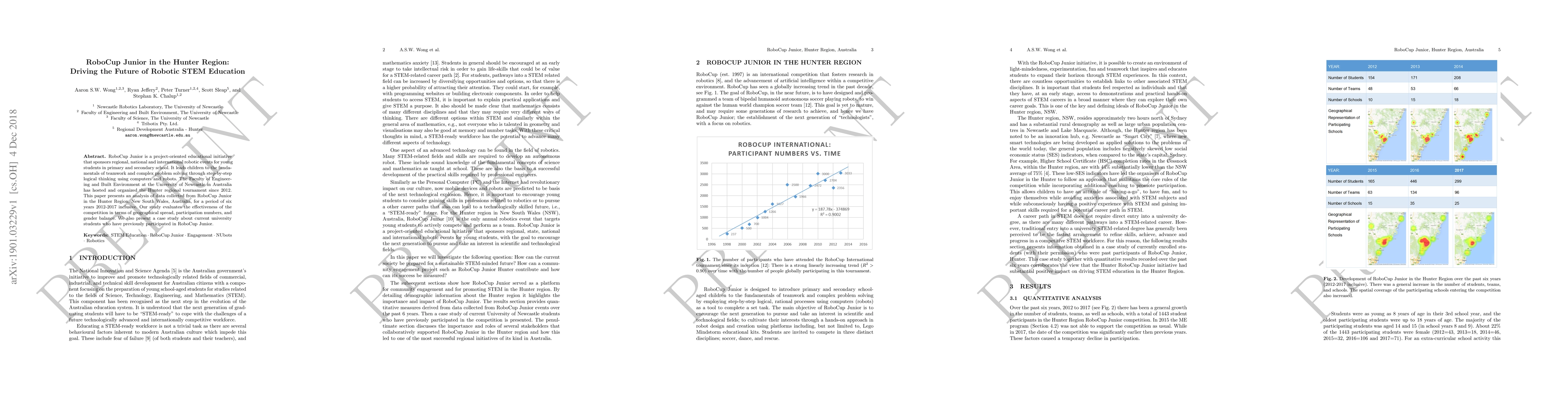 RoboCup Junior is a project-oriented educational initiative that sponsors regional, national and international robotic events for young students in primary and secondary school. It leads children to the fundamentals of teamwork and complex problem solving through step-by-step logical thinking using computers and robots. The Faculty of Engineering and Built Environment at the University of Newcastle in Australia has hosted and organized the Hunter regional tournament since 2012. This paper presents an analysis of data collected from RoboCup Junior in the Hunter Region, New South Wales, Australia, for a period of six years 2012-2017 inclusive. Our study evaluates the effectiveness of the competition in terms of geographical spread, participation numbers, and gender balance. We also present a case study about current university students who have previously participated in RoboCup Junior.