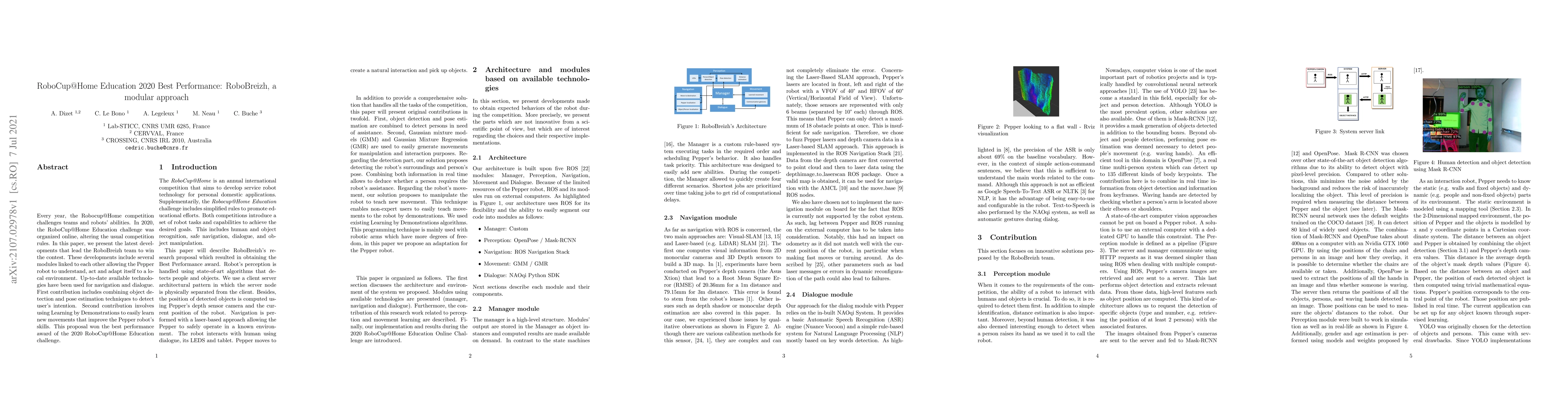 The RoboBreizh team won the 2020 RoboCup@Home Education challenge by developing a modular approach for a Pepper robot. They combined object detection and pose estimation for user intention recognition, and employed Learning by Demonstrations for learning new movements, enhancing the robot's skills.