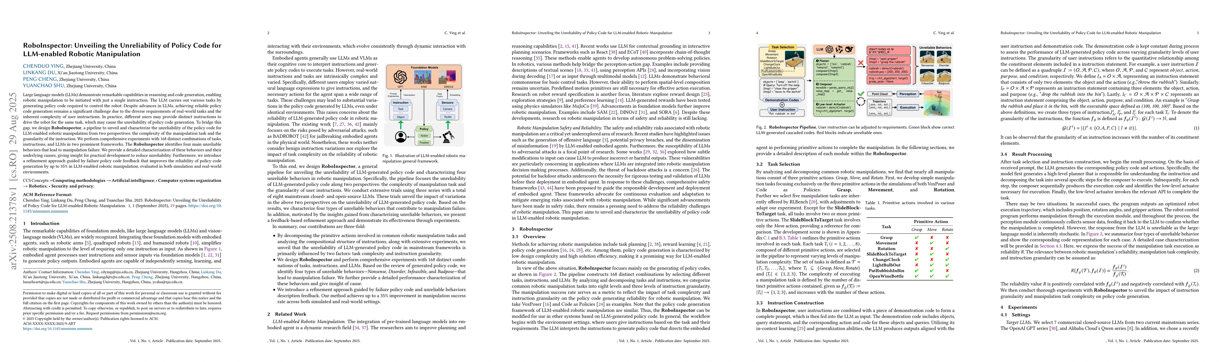 Large language models (LLMs) demonstrate remarkable capabilities in reasoning and code generation, enabling robotic manipulation to be initiated with just a single instruction. The LLM carries out various tasks by generating policy code required to control the robot. Despite advances in LLMs, achieving reliable policy code generation remains a significant challenge due to the diverse requirements of real-world tasks and the inherent complexity of user instructions. In practice, different users may provide distinct instructions to drive the robot for the same task, which may cause the unreliability of policy code generation. To bridge this gap, we design RoboInspector, a pipeline to unveil and characterize the unreliability of the policy code for LLM-enabled robotic manipulation from two perspectives: the complexity of the manipulation task and the granularity of the instruction. We perform comprehensive experiments with 168 distinct combinations of tasks, instructions, and LLMs in two prominent frameworks. The RoboInspector identifies four main unreliable behaviors that lead to manipulation failure. We provide a detailed characterization of these behaviors and their underlying causes, giving insight for practical development to reduce unreliability. Furthermore, we introduce a refinement approach guided by failure policy code feedback that improves the reliability of policy code generation by up to 35% in LLM-enabled robotic manipulation, evaluated in both simulation and real-world environments.
