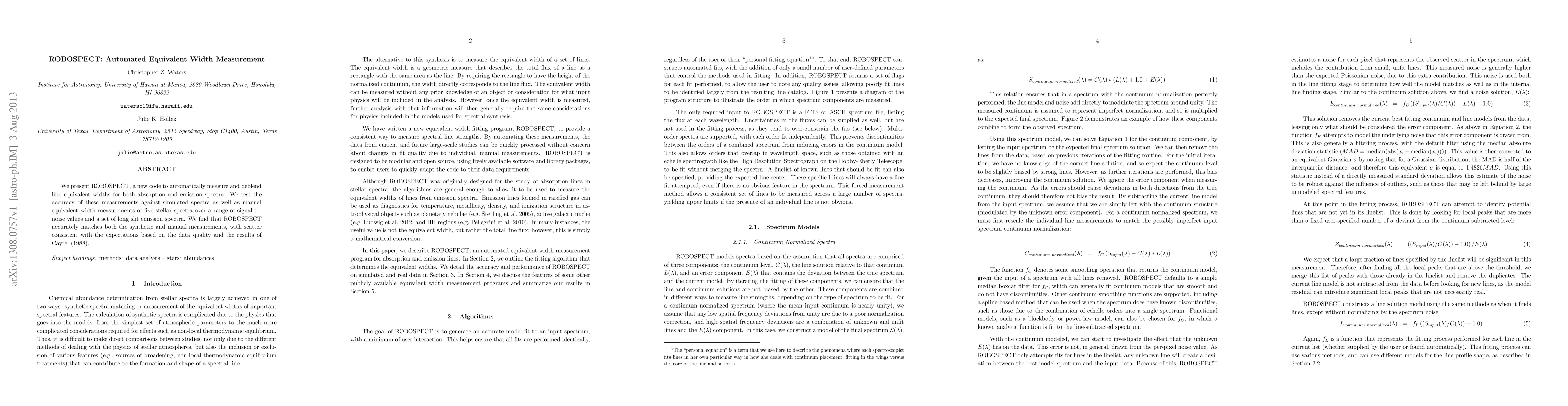 A new code called ROBOSPECT accurately measures equivalent widths in stellar spectra with high precision, outperforming manual methods even at low signal-to-noise levels.