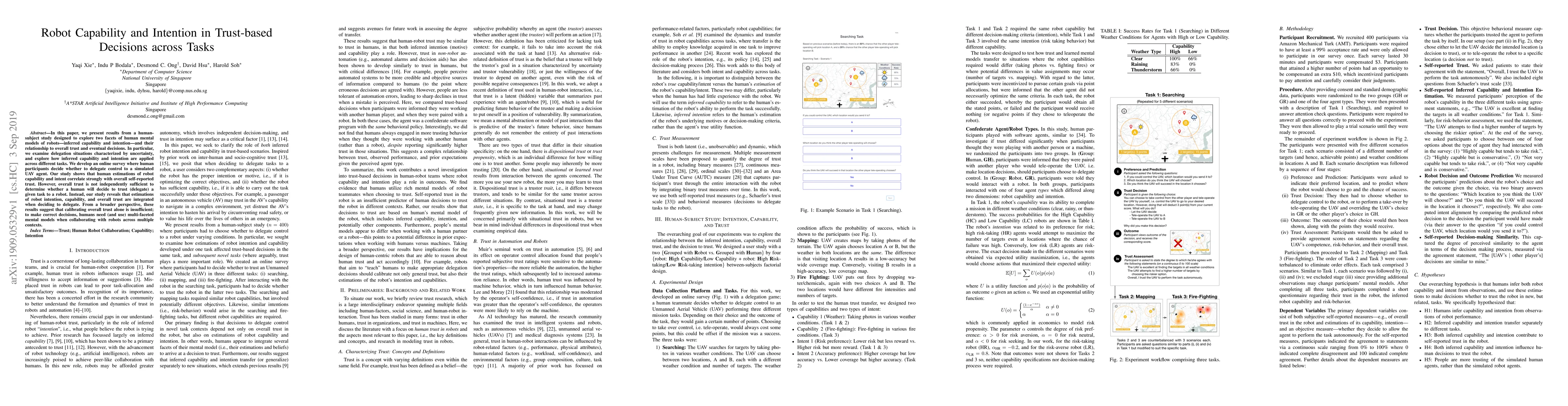 Human trust in robots is influenced by both capability and intention, with overall trust not solely determining delegation decisions. Humans use multi-faceted mental models to make correct decisions when collaborating with robots.