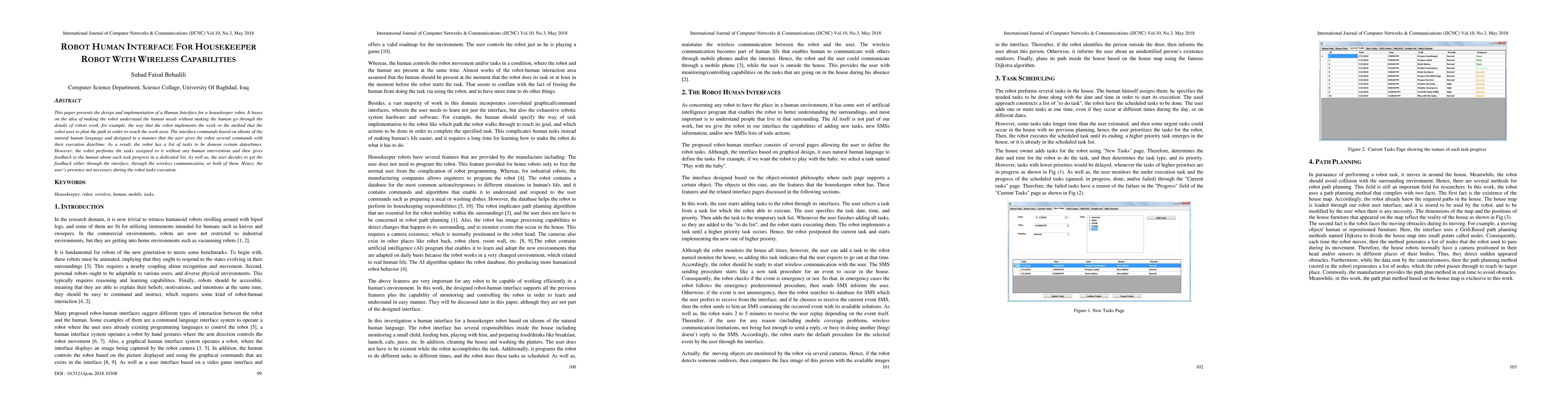 This paper introduces a human interface for a housekeeper robot that allows users to issue commands in natural language without needing to understand the robot's operational details. The interface enables users to schedule tasks with specific dates and times.