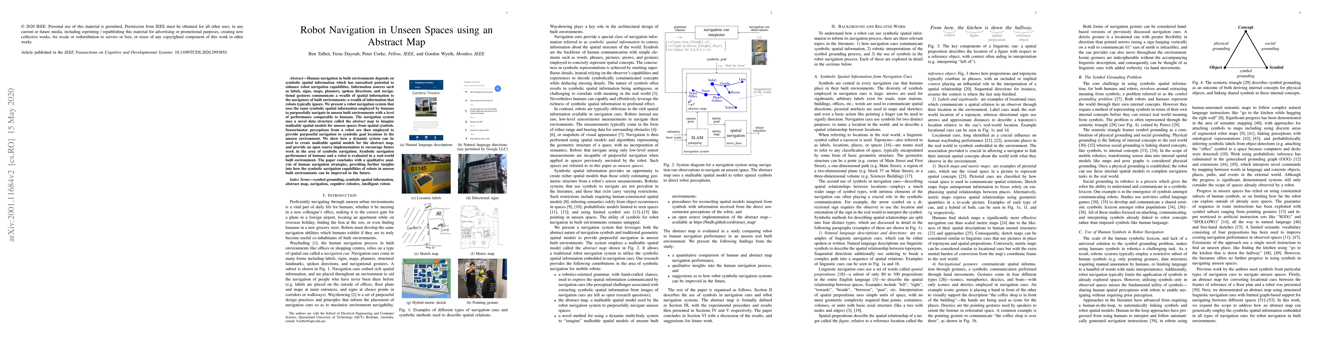 This paper introduces a robot navigation system that leverages symbolic spatial information to navigate unseen built environments, employing an abstract map to create malleable spatial models. The system's performance is shown to be comparable to human navigation, with an open-source implementation to foster further research in symbolic navigation.