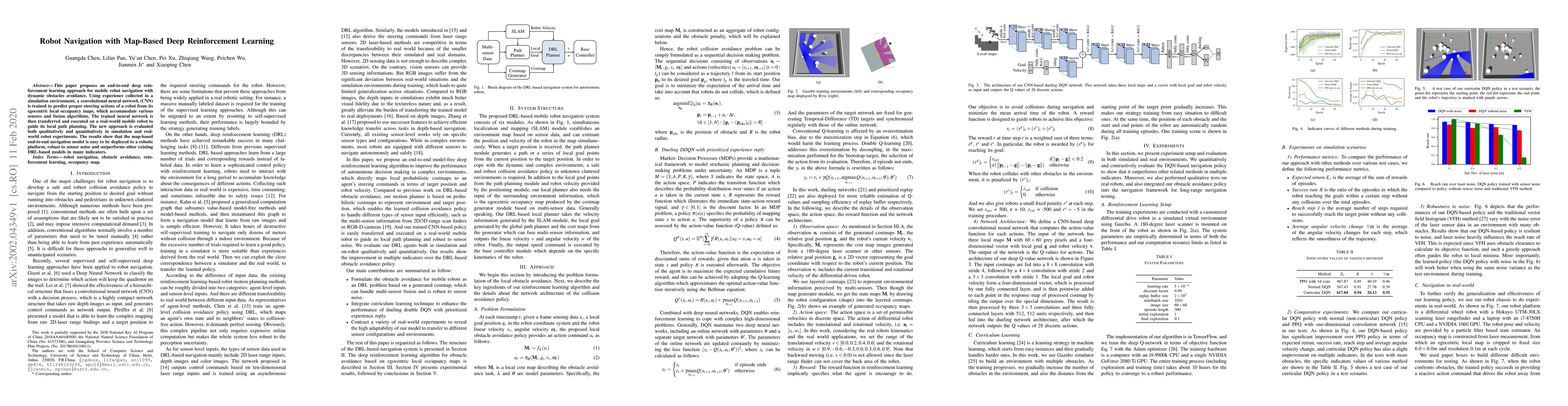 This paper proposes an end-to-end deep reinforcement learning approach for mobile robot navigation with dynamic obstacles avoidance. Using experience collected in a simulation environment, a convolutional neural network (CNN) is trained to predict proper steering actions of a robot from its egocentric local occupancy maps, which accommodate various sensors and fusion algorithms. The trained neural network is then transferred and executed on a real-world mobile robot to guide its local path planning. The new approach is evaluated both qualitatively and quantitatively in simulation and real-world robot experiments. The results show that the map-based end-to-end navigation model is easy to be deployed to a robotic platform, robust to sensor noise and outperforms other existing DRL-based models in many indicators.