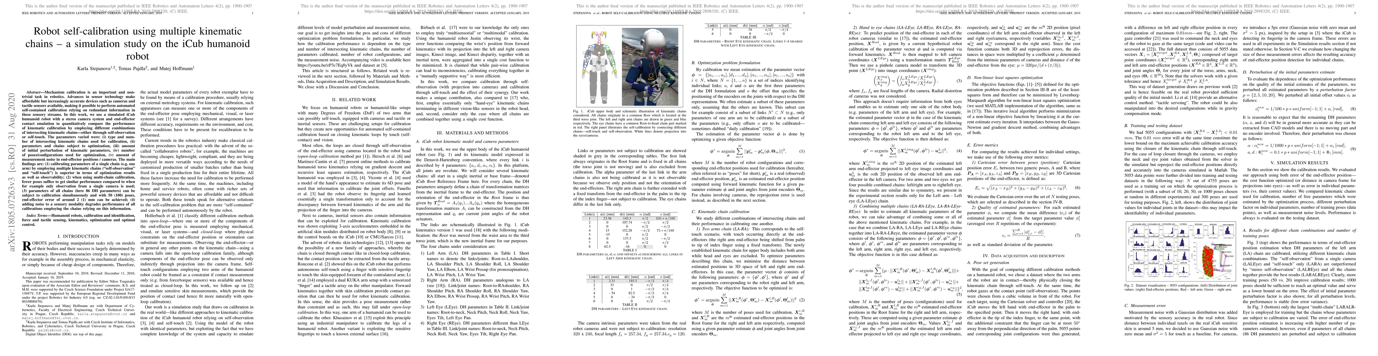 This study investigates robot self-calibration for the iCub humanoid robot using multiple kinematic chains in simulation. It finds that calibrating parameters of a single chain through multiple kinematic chains yields better optimization results and observability, and that fewer poses are needed for multi-chain calibration compared to single-camera observation.