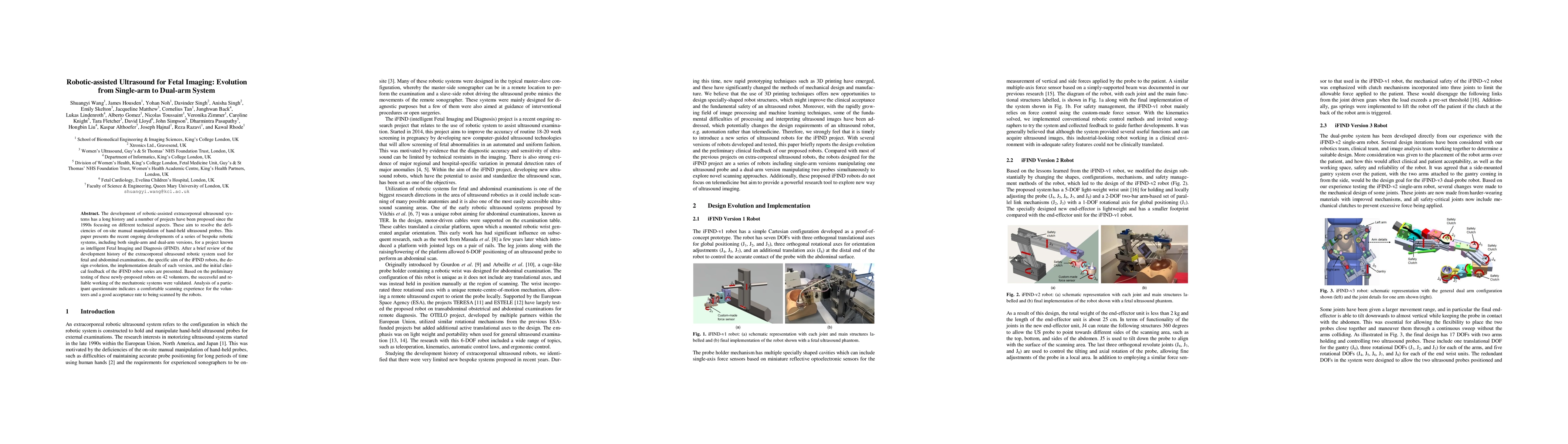 This paper details the evolution of robotic-assisted ultrasound systems from single-arm to dual-arm configurations for fetal imaging, highlighting the development history, design improvements, and positive initial clinical feedback from 42 volunteers. The dual-arm system shows promising results in providing a comfortable and reliable scanning experience.