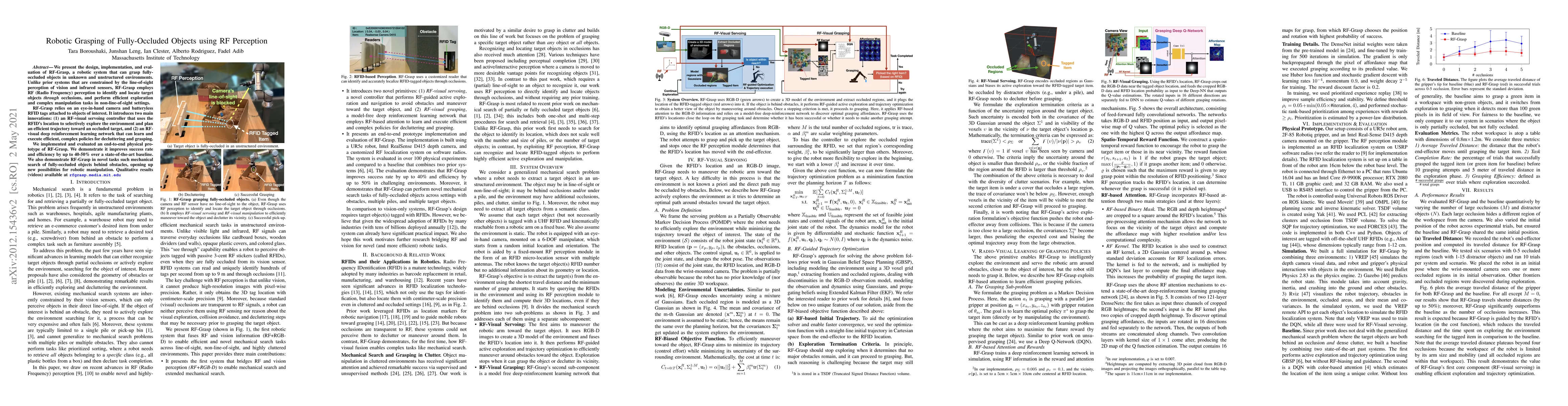 RF-Grasp fuses RF and visual information to enable robotic grasping of fully-occluded objects, introducing RF-visual servoing and an RF-visual deep reinforcement learning network.