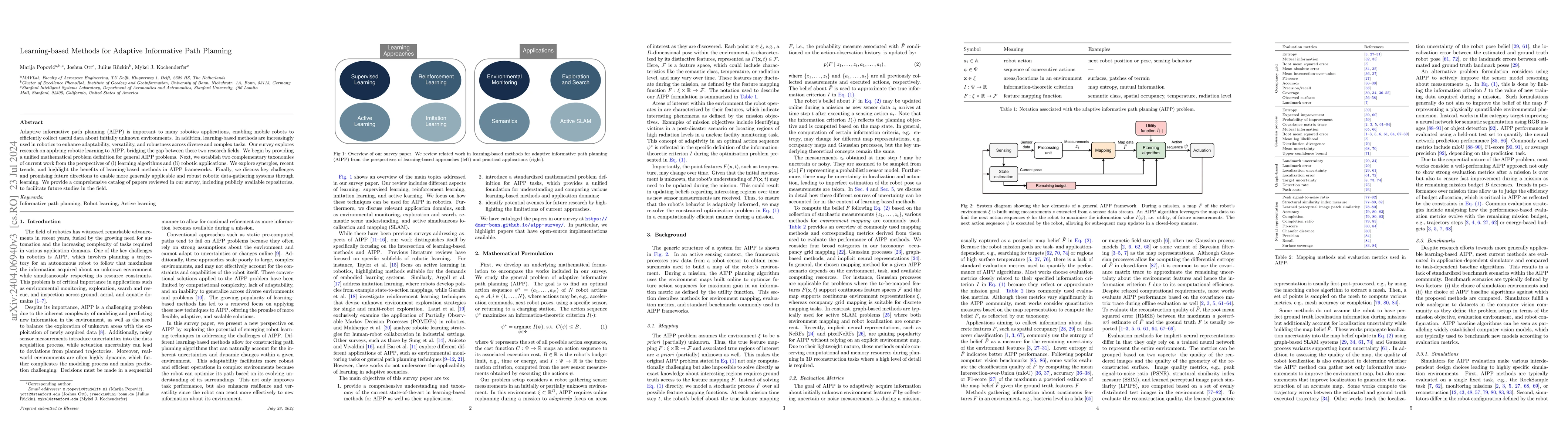 This paper surveys research on robotic learning applied to adaptive informative path planning (AIPP), providing a mathematical framework and taxonomies of learning algorithms and applications. It highlights the benefits and challenges of learning-based methods in AIPP and discusses future research directions.