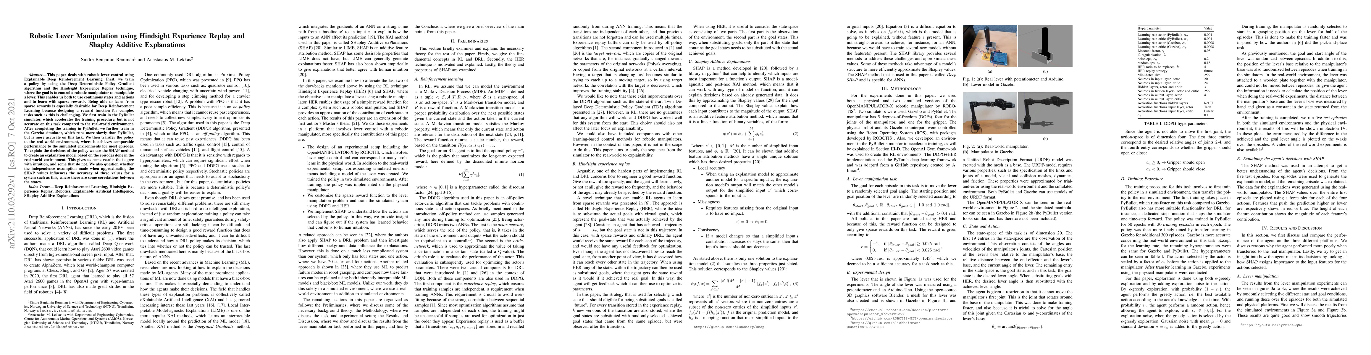 Researchers developed a robotic lever control system using Explainable Deep Reinforcement Learning, achieving comparable performance in simulated and real-world environments, and providing explanations for policy decisions through SHAP method.
