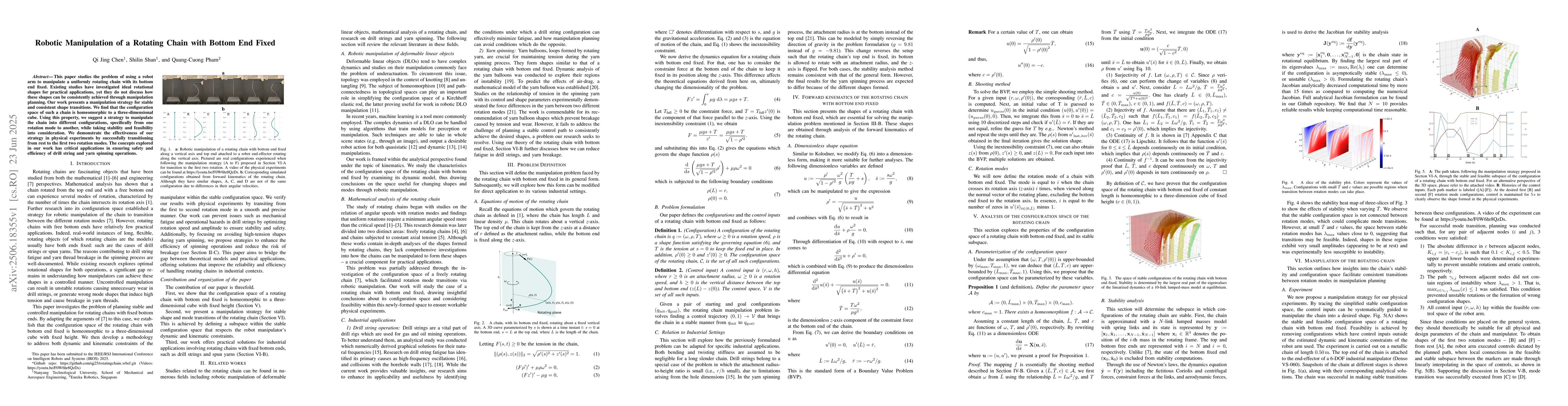 This paper studies the problem of using a robot arm to manipulate a uniformly rotating chain with its bottom end fixed. Existing studies have investigated ideal rotational shapes for practical applications, yet they do not discuss how these shapes can be consistently achieved through manipulation planning. Our work presents a manipulation strategy for stable and consistent shape transitions. We find that the configuration space of such a chain is homeomorphic to a three-dimensional cube. Using this property, we suggest a strategy to manipulate the chain into different configurations, specifically from one rotation mode to another, while taking stability and feasibility into consideration. We demonstrate the effectiveness of our strategy in physical experiments by successfully transitioning from rest to the first two rotation modes. The concepts explored in our work has critical applications in ensuring safety and efficiency of drill string and yarn spinning operations.
