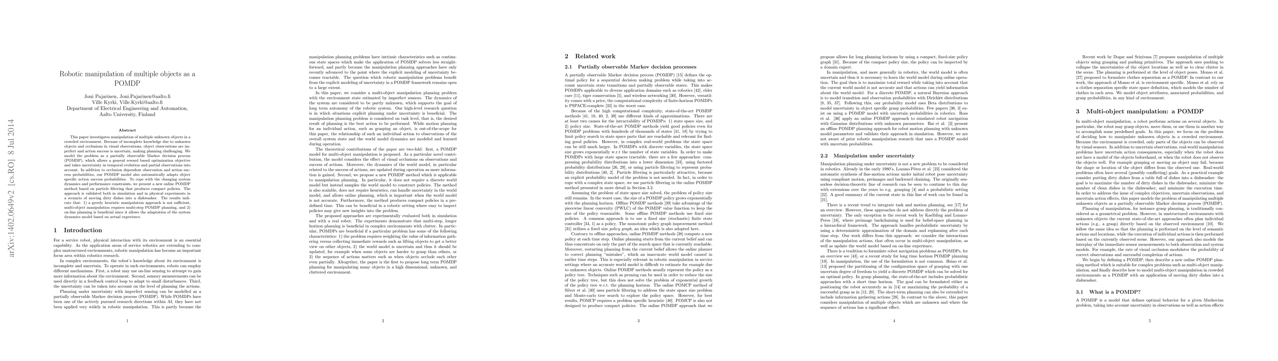 Researchers developed an online POMDP method for robotic manipulation of multiple unknown objects in a crowded environment, showing that greedy heuristics are insufficient and online planning is beneficial.