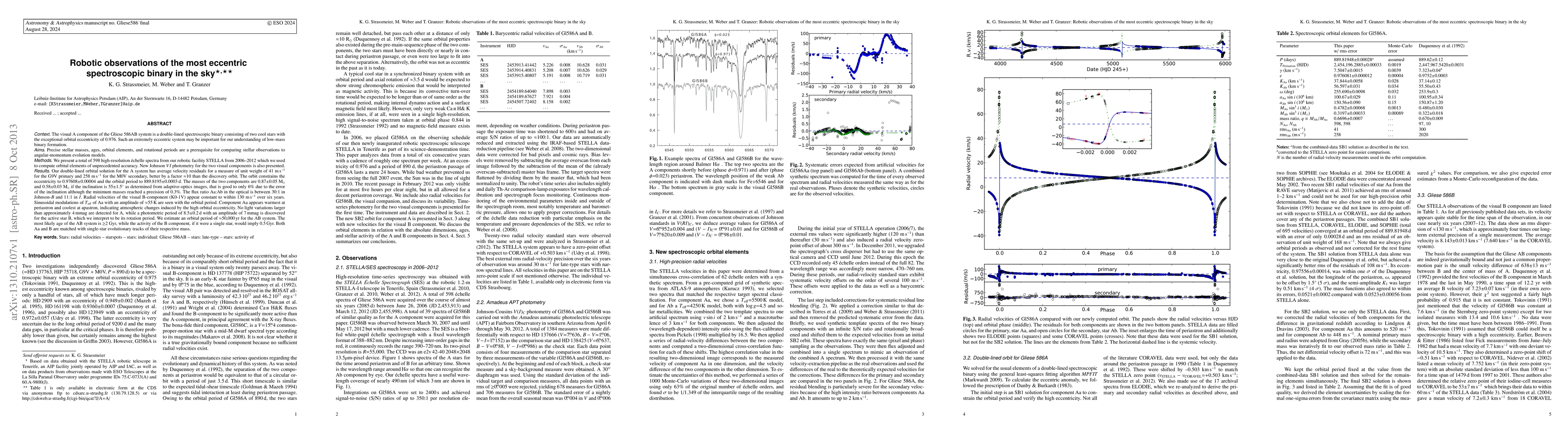 The visual A component of the Gliese 586AB system is a double-lined spectroscopic binary consisting of two cool stars with the exceptional orbital eccentricity of 0.976. Such an extremely eccentric system may be important for our understanding of low-mass binary formation. We present a total of 598 high-resolution echelle spectra from our robotic facility STELLA from 2006-2012 which we used to compute orbital elements of unprecedented accuracy. The orbit constrains the eccentricity to 0.97608+/-0.00004 and the orbital period to 889.8195+/-0.0003d. The masses of the two components are 0.87+/-0.05 Msun and 0.58+/-0.03 Msun if the inclination is 5+/-1.5degr as determined from adaptive-optics images, that is good to only 6% due to the error of the inclination although the minimum masses reached a precision of 0.3%. The flux ratio Aa:Ab in the optical is betwee n 30:1 in Johnson-B and 11:1 in I. Radial velocities of the visual B-component (K0-1V) appear constant to within 130 m/s over six years. Sinusoidal modulations of Teff of Aa with an amplitude of apprx 55 K are seen with the orbital period. Component Aa appears warmest at periastron and coolest at apastron, indicating atmospheric changes induced by the high orbital eccentricity. No light variations larger than approximately 4 mmag are detected for A, while a photometric period of 8.5+/-0.2 d with an amplitude of 7 mmag is discovered for the active star B, which we interpret to be its rotation period. We estimate an orbital period of approx 50,000 yr for the AB system. The most likely age of the AB system is >=2 Gyr, while the activity of the B component, if it were a single star, would imply 0.5 Gyr. Both Aa and B are matched with single-star evolutionary tracks of their respective mass.