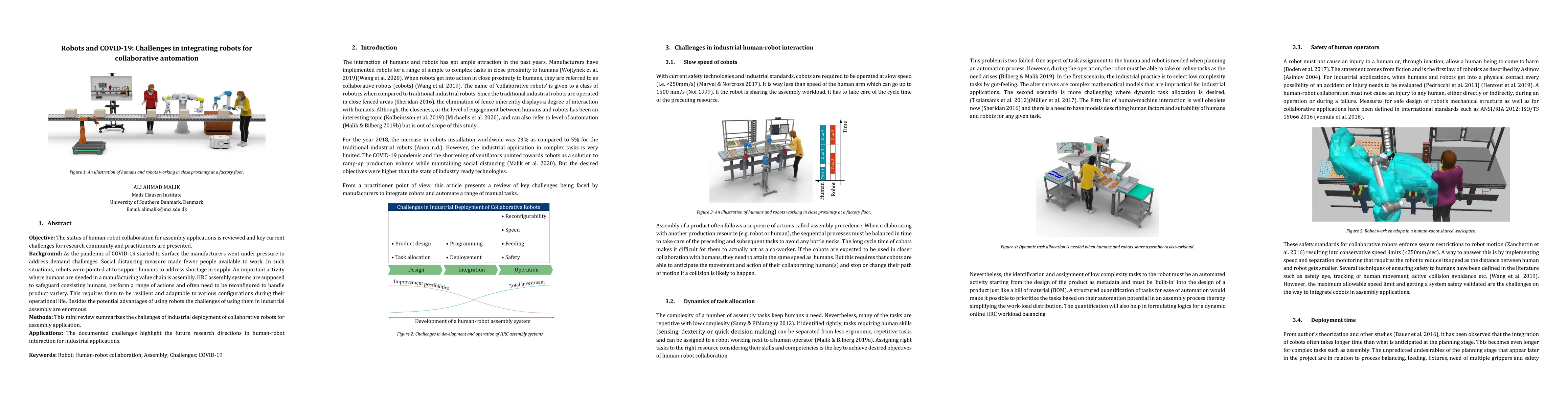 This paper reviews the integration of collaborative robots in assembly applications amidst COVID-19, highlighting significant challenges for both researchers and practitioners. The review underscores the need for resilient and adaptable human-robot collaborative systems to address supply chain demands and social distancing measures.