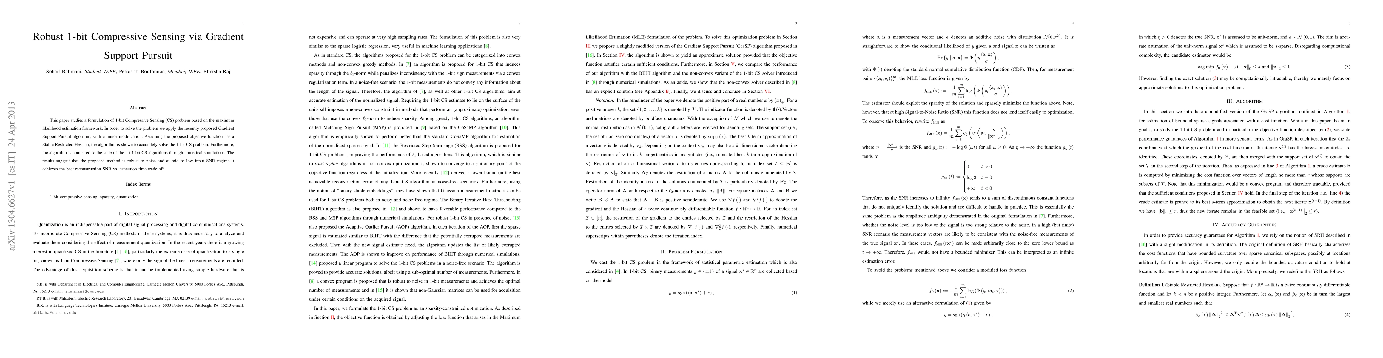 A new algorithm called Gradient Support Pursuit is proposed to solve 1-bit Compressed Sensing problems with high accuracy, outperforming existing methods at low input SNR regimes.