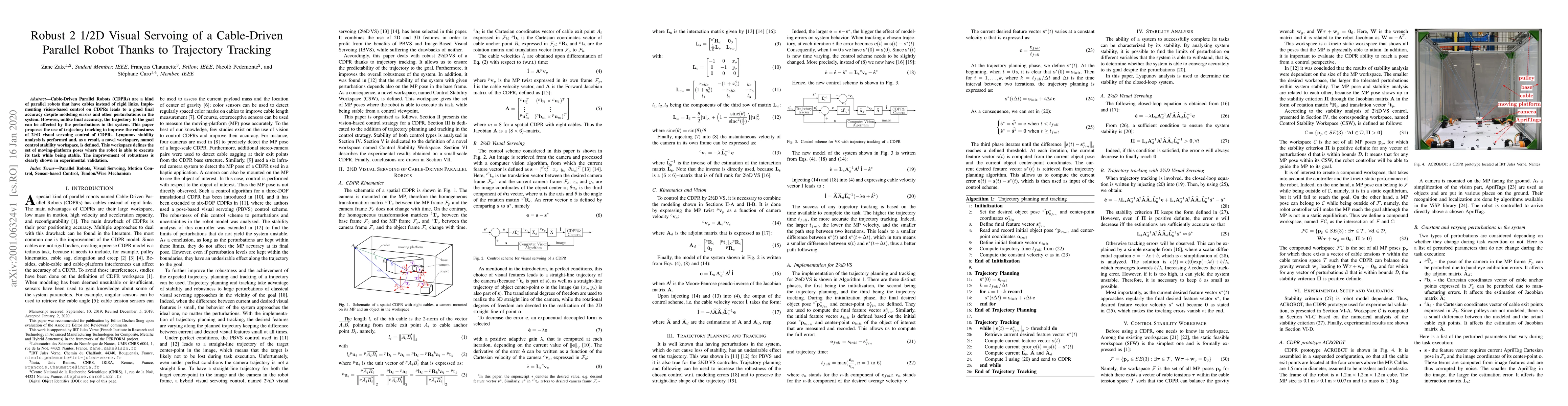 This paper proposes a method to improve the robustness of 2D visual servoing control for Cable-Driven Parallel Robots using trajectory tracking, enabling stable task execution despite system perturbations.