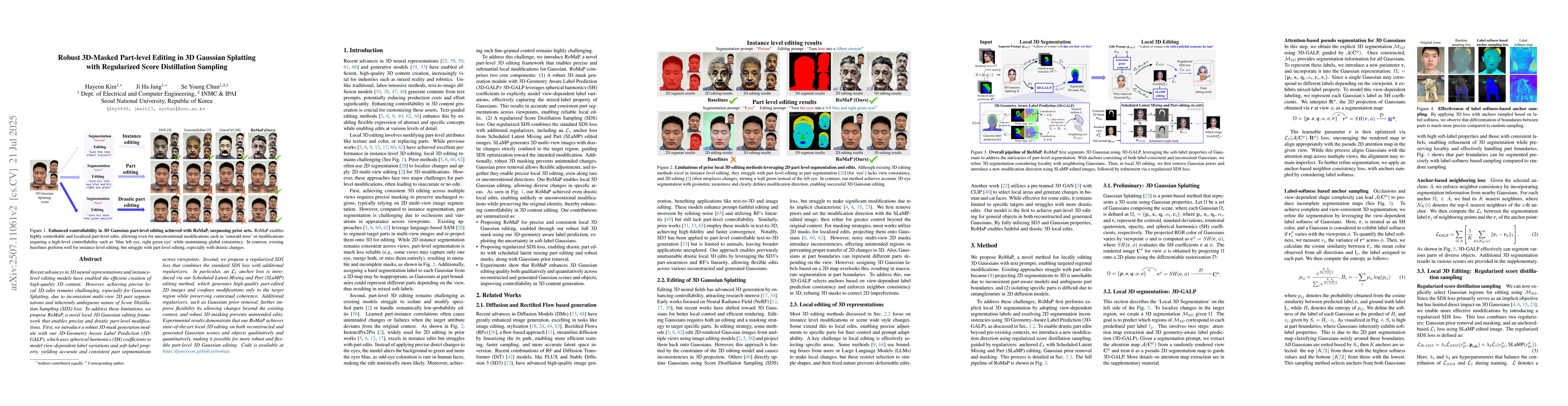 Recent advances in 3D neural representations and instance-level editing models have enabled the efficient creation of high-quality 3D content. However, achieving precise local 3D edits remains challenging, especially for Gaussian Splatting, due to inconsistent multi-view 2D part segmentations and inherently ambiguous nature of Score Distillation Sampling (SDS) loss. To address these limitations, we propose RoMaP, a novel local 3D Gaussian editing framework that enables precise and drastic part-level modifications. First, we introduce a robust 3D mask generation module with our 3D-Geometry Aware Label Prediction (3D-GALP), which uses spherical harmonics (SH) coefficients to model view-dependent label variations and soft-label property, yielding accurate and consistent part segmentations across viewpoints. Second, we propose a regularized SDS loss that combines the standard SDS loss with additional regularizers. In particular, an L1 anchor loss is introduced via our Scheduled Latent Mixing and Part (SLaMP) editing method, which generates high-quality part-edited 2D images and confines modifications only to the target region while preserving contextual coherence. Additional regularizers, such as Gaussian prior removal, further improve flexibility by allowing changes beyond the existing context, and robust 3D masking prevents unintended edits. Experimental results demonstrate that our RoMaP achieves state-of-the-art local 3D editing on both reconstructed and generated Gaussian scenes and objects qualitatively and quantitatively, making it possible for more robust and flexible part-level 3D Gaussian editing.