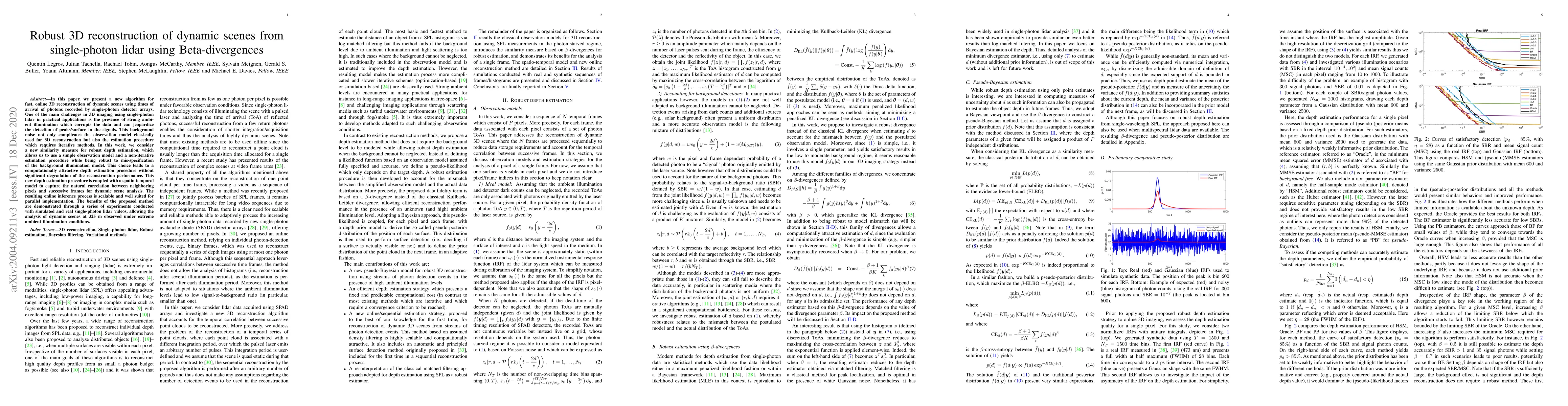 This paper introduces a novel algorithm for real-time 3D reconstruction from single-photon lidar data, employing Beta-divergences for robust depth estimation amidst strong ambient illumination. The method uses a non-iterative estimation procedure and a spatio-temporal model for dynamic scene analysis, demonstrating scalability and effectiveness in challenging conditions.