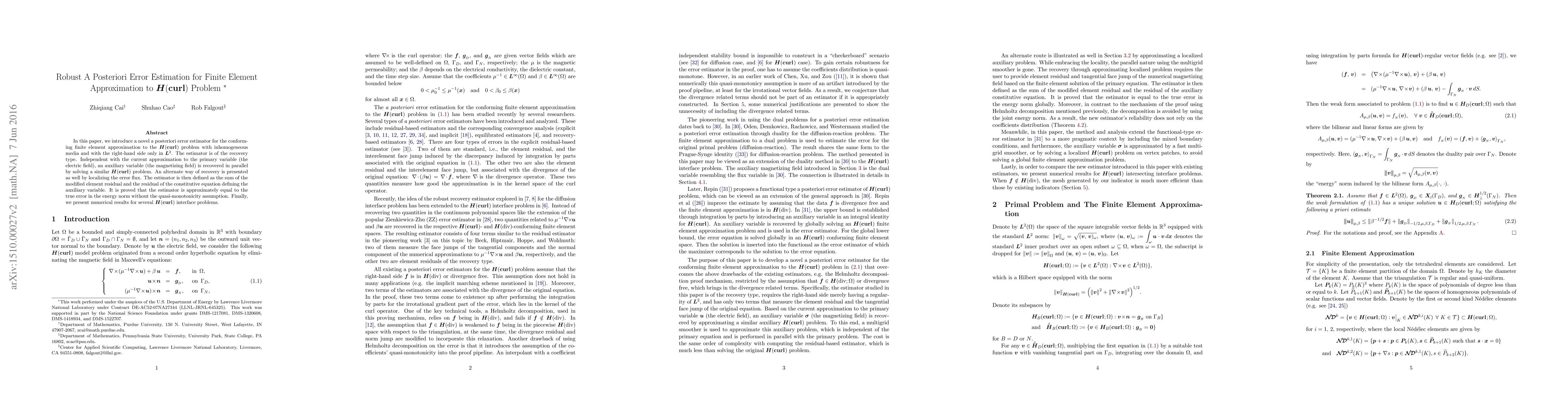 This paper proposes a novel a posteriori error estimator for finite element approximations of H(curl) problems, using recovery techniques to estimate errors independently of the current solution. Numerical results demonstrate the estimator's accuracy for two H(curl) interface problems.